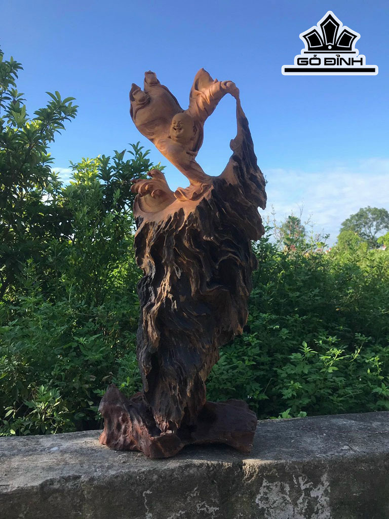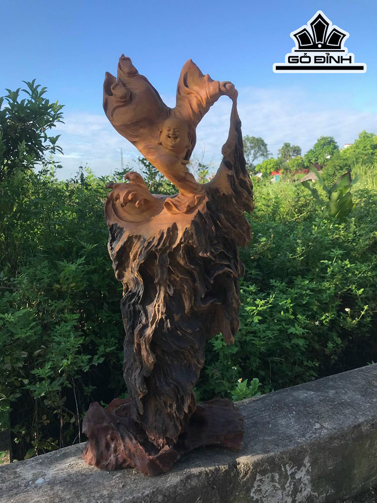 Tượng Phật Di Lặc Gỗ Dổi Cao 75 Ngang 25 Sâu 25 (cm)