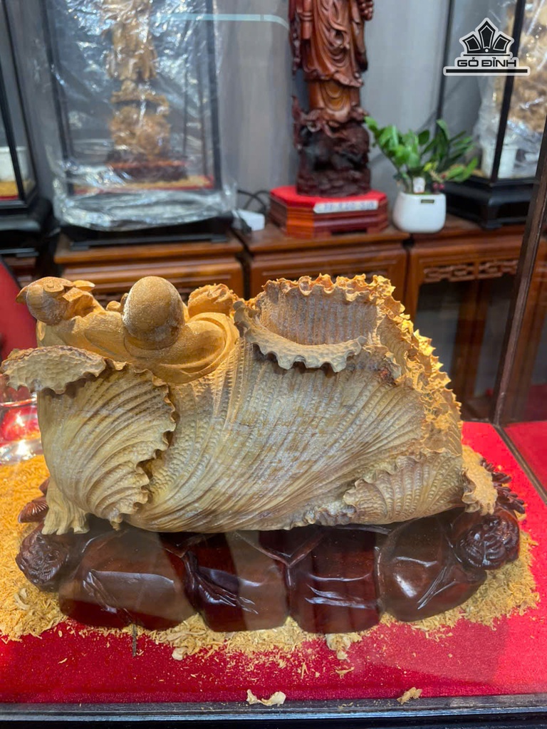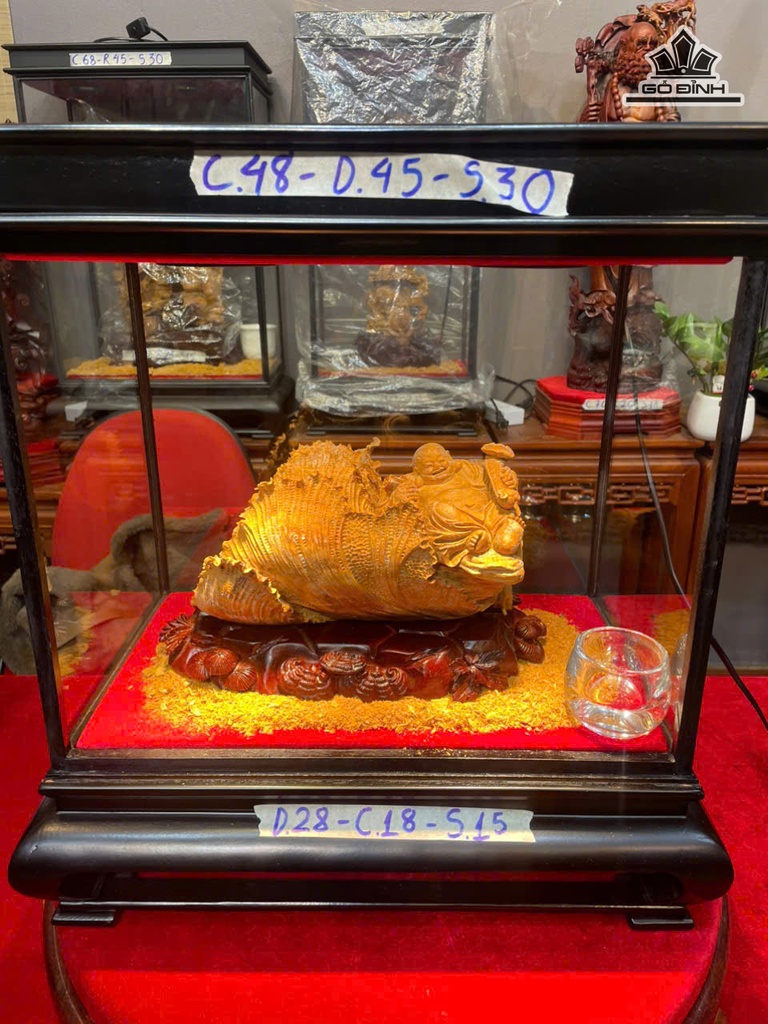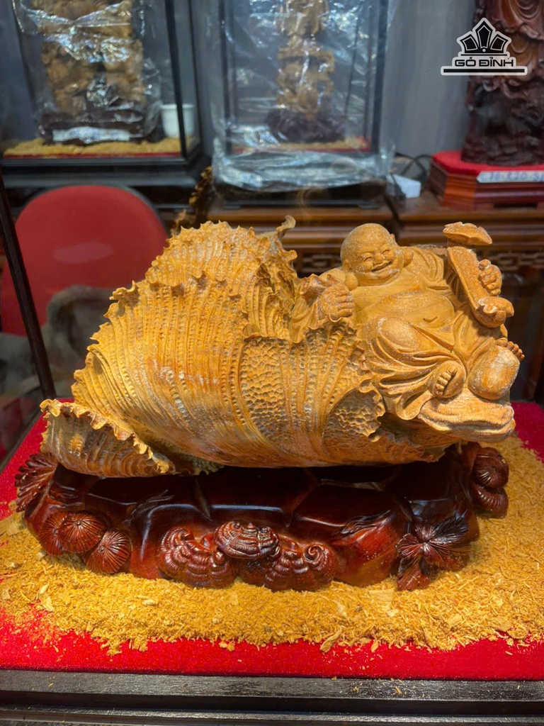Tượng Phật Di Lặc Gỗ Hoàng Đàn Cao 18 Ngang 28 Sâu 15 (cm)