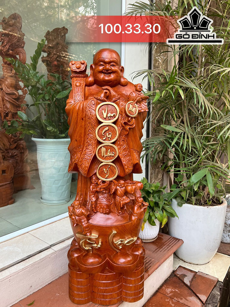 Tượng Phật Di Lặc Gỗ Hương Cao 100 Ngang 33 Sâu 30 (cm)