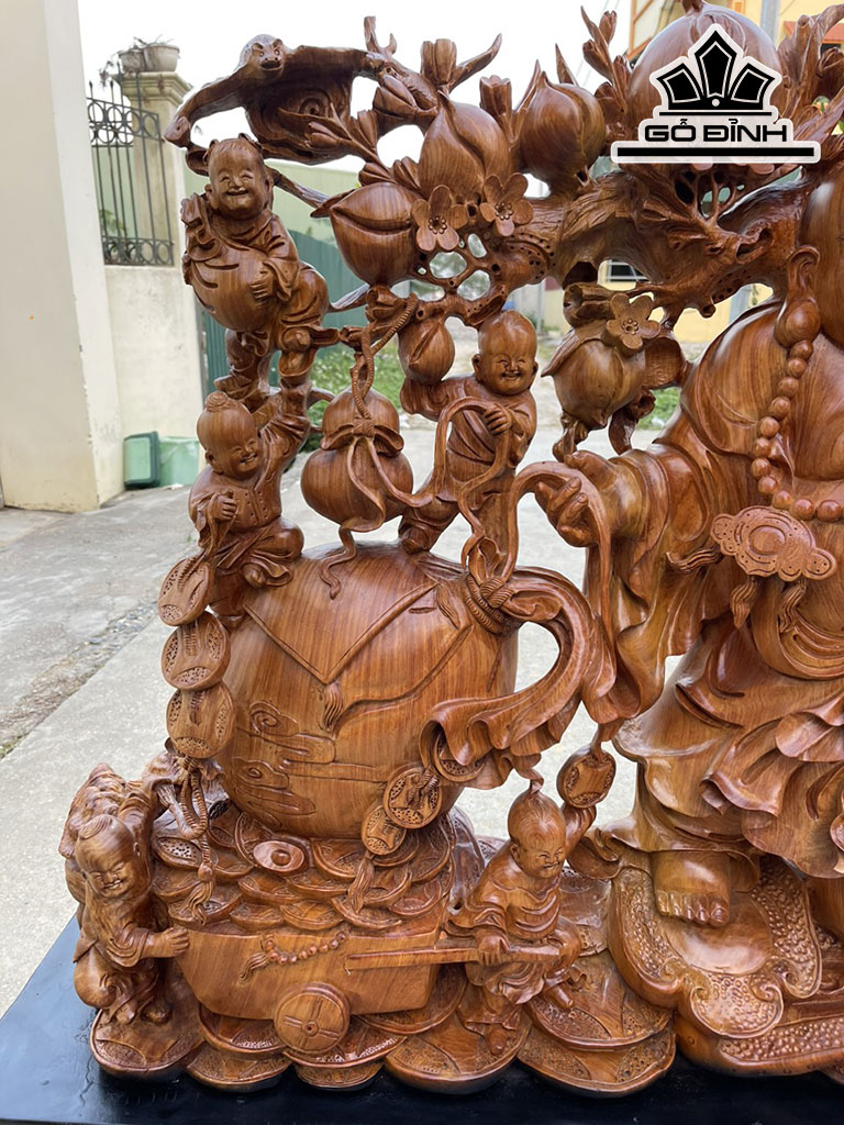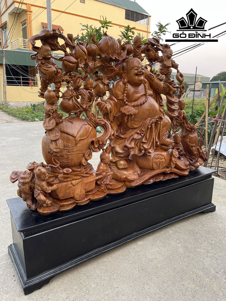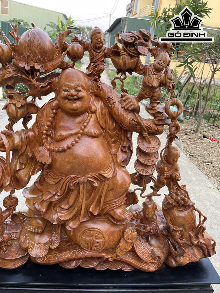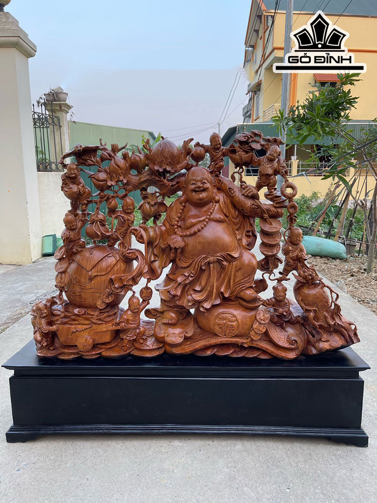 Tượng Phật Di Lặc Gỗ Hương Cao 110 Ngang 125 Sâu 30 (cm)