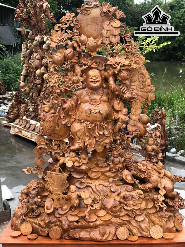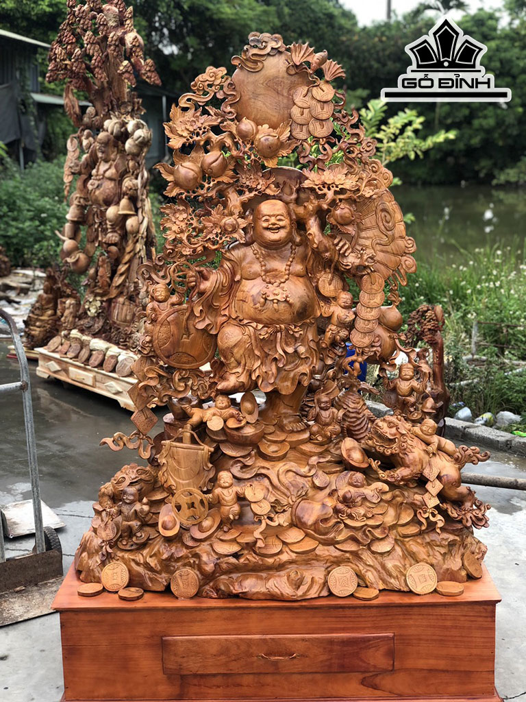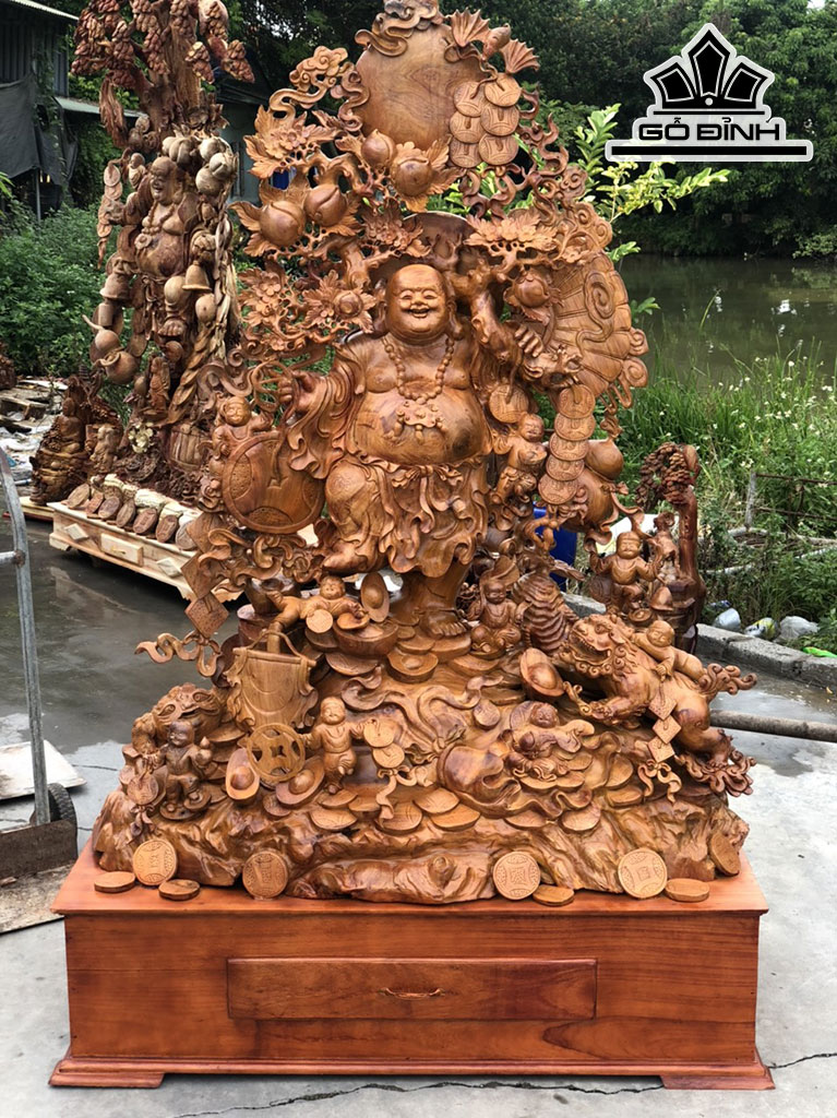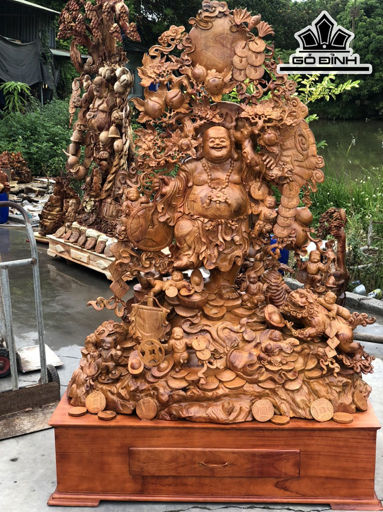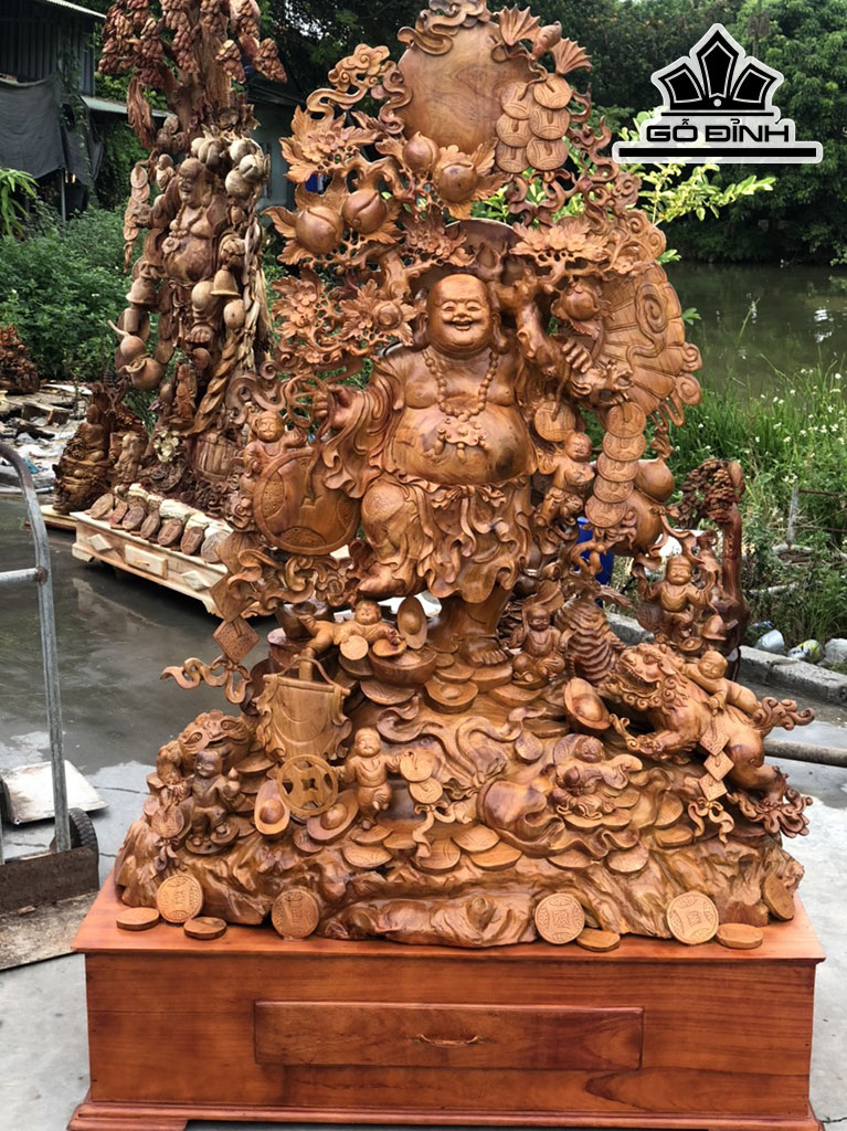 Tượng Phật Di Lặc Gỗ Hương Cao 205 Ngang 135 Sâu 70 Kỷ Cao 35 (cm)