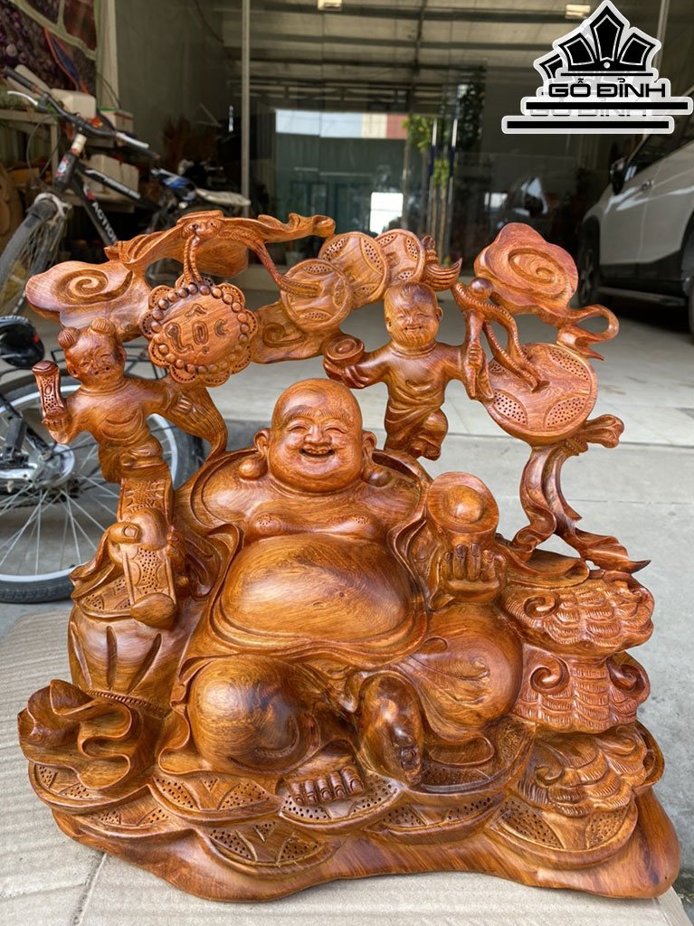 Tượng Phật Di Lặc Gỗ Hương Cao 35 Ngang 39 Sâu 25 (cm)