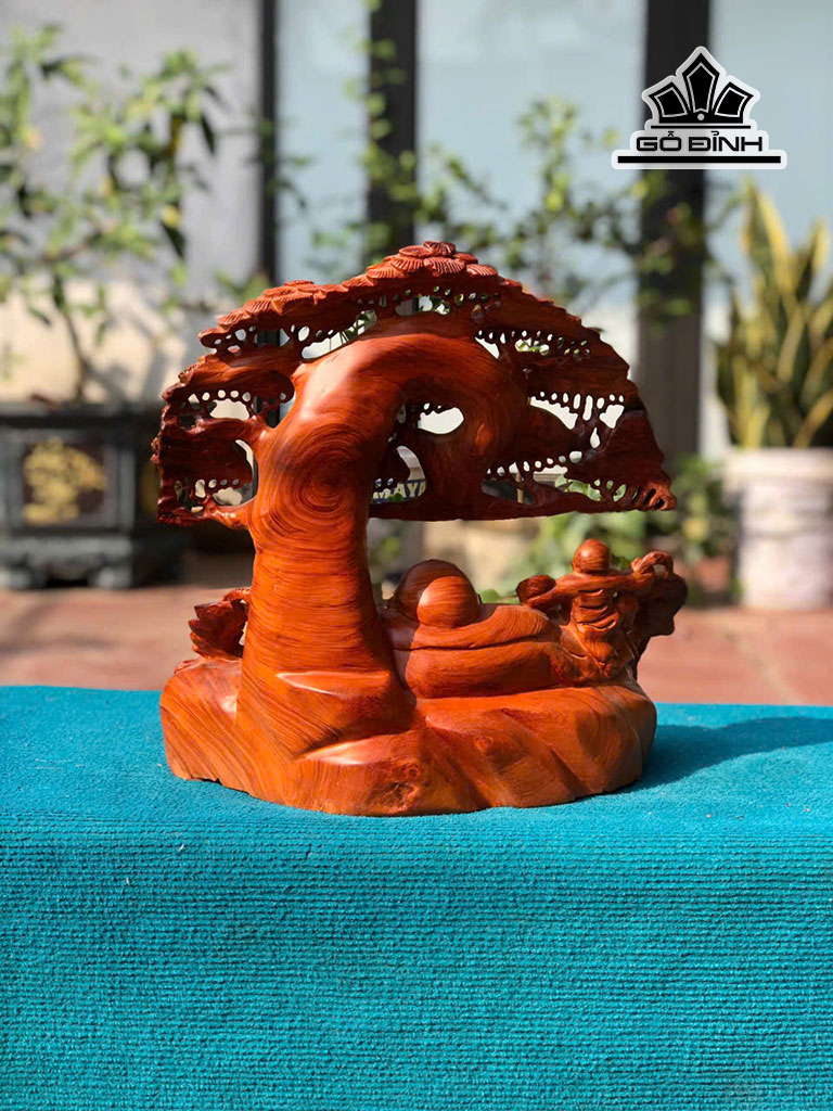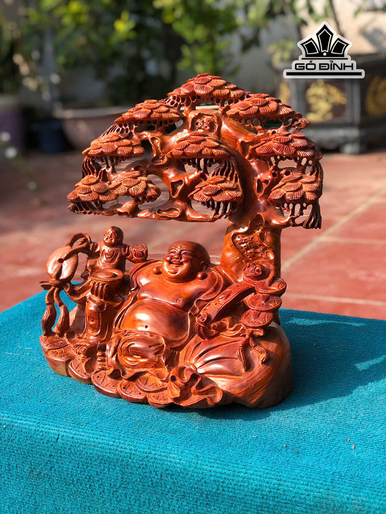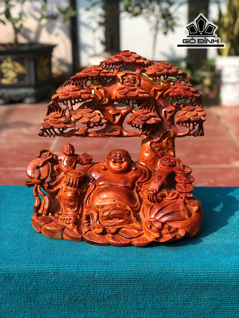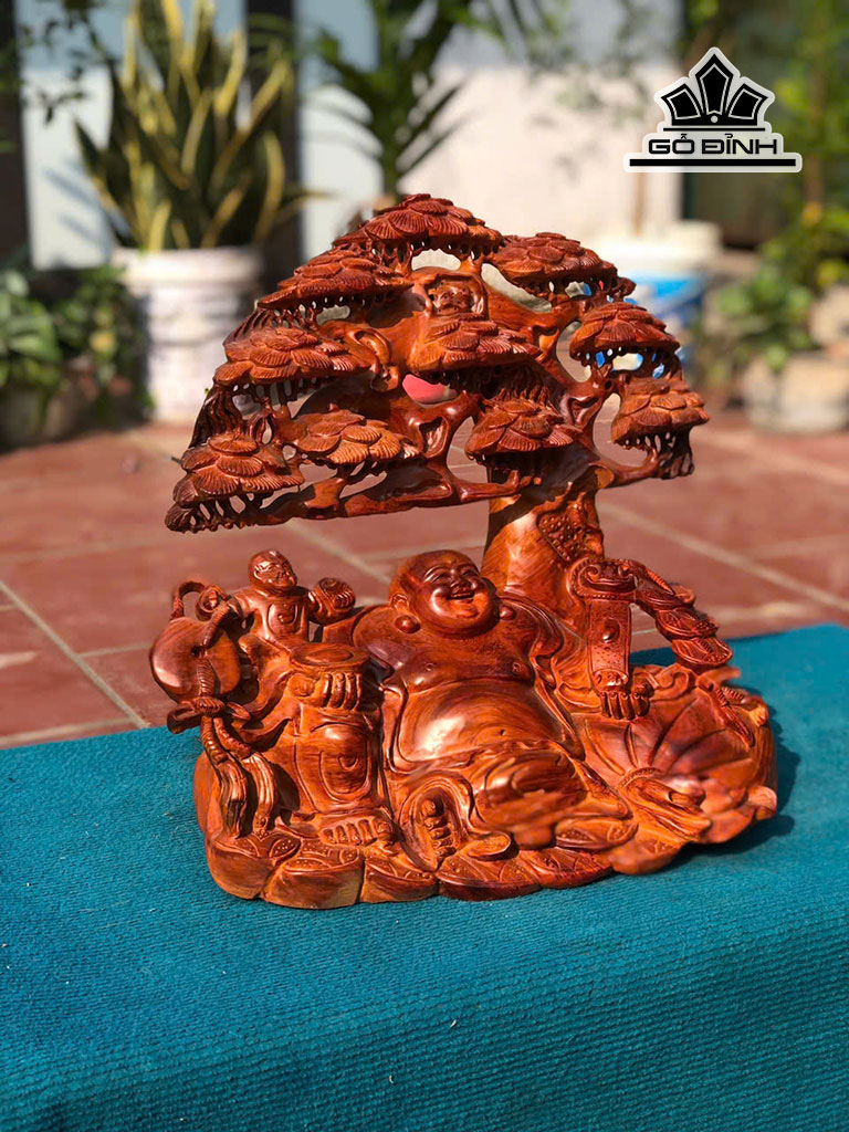 Tượng Phật Di Lặc Gỗ Hương Cao 38 Ngang 38 Sâu 26 (cm)