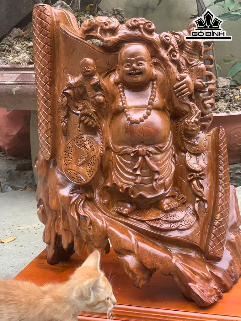 Tượng Phật Di Lặc Gỗ Hương Cao 51 Ngang 60 Sâu 45 Cao Cả Kỷ 60 (cm)
