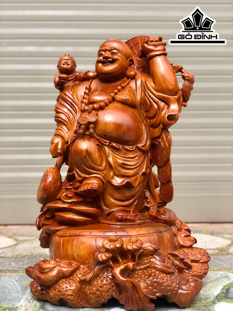 Tượng Phật Di Lặc Gỗ Hương Cao 52 Ngang 32 Sâu 36 (cm)