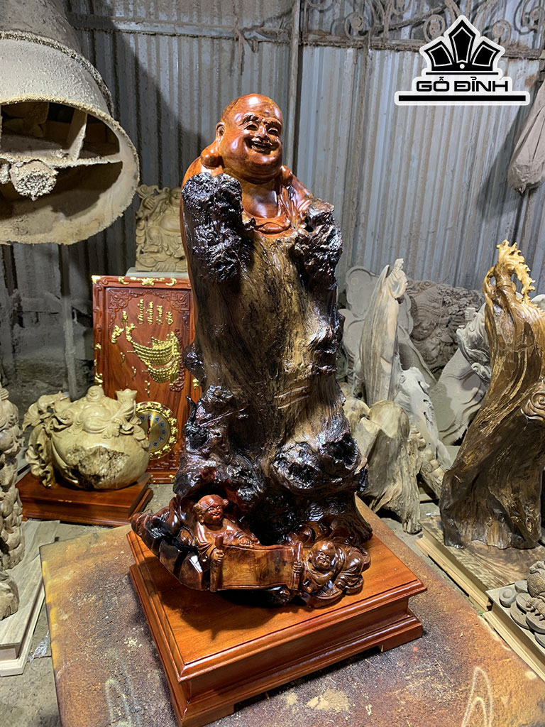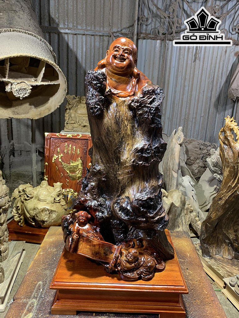 Tượng Phật Di Lặc Gỗ Hương Cao 61 Ngang 35 Sâu 28 (cm)