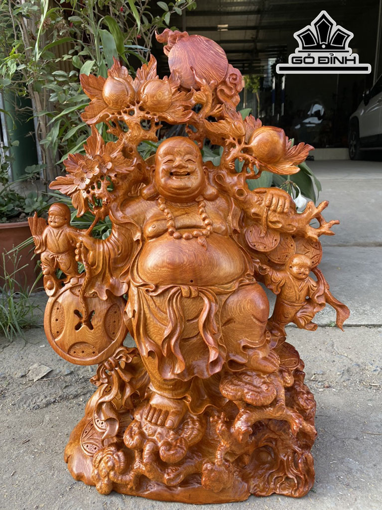 Tượng Phật Di Lặc Gỗ Hương Cao 70 Ngang 48 Sâu 27 (cm)