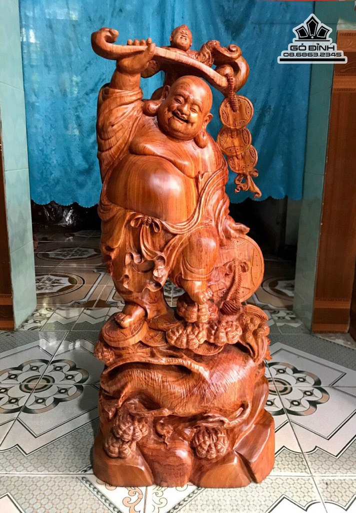 Tượng Phật Di Lặc Gỗ Hương Cao 80 Ngang 34 Sâu 15 (cm)