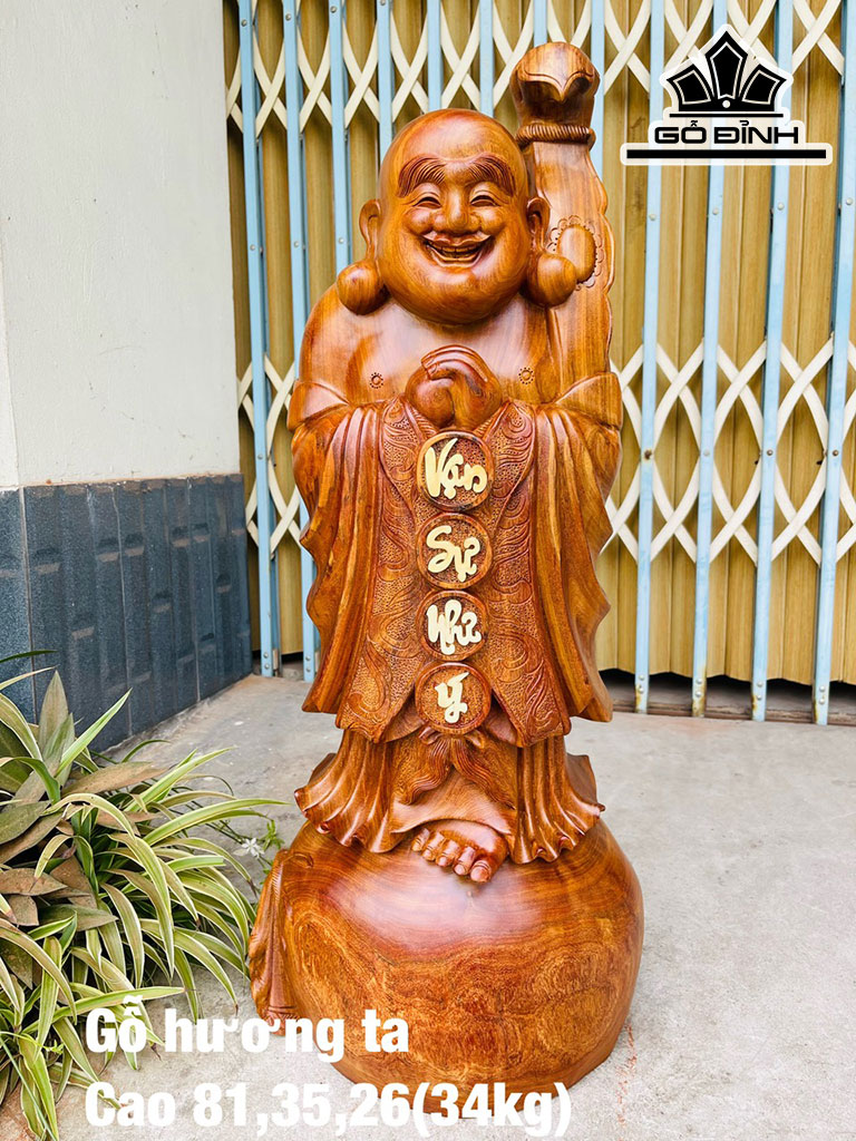 Tượng Phật Di Lặc Gỗ Hương Cao 81 Ngang 35 Sâu 26 (cm)