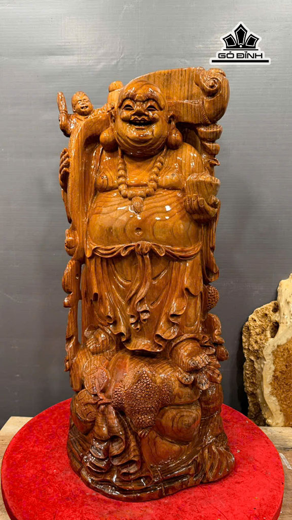 Tượng Phật Di Lặc Gỗ Huyết Long Cao 84 Ngang 37 Sâu 34 (cm) 38kg