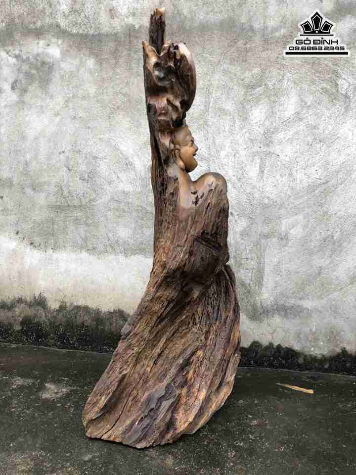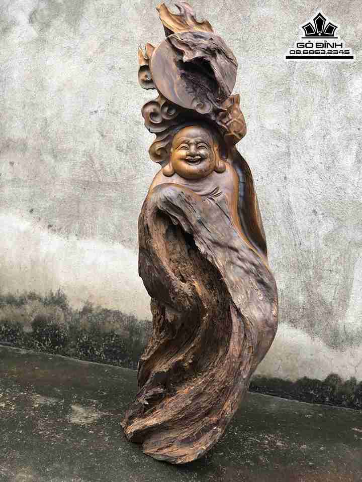 Tượng Phật Di Lặc Gỗ Lũa Bách Xanh Cao 101 Rộng 29 Dày 36 (cm)