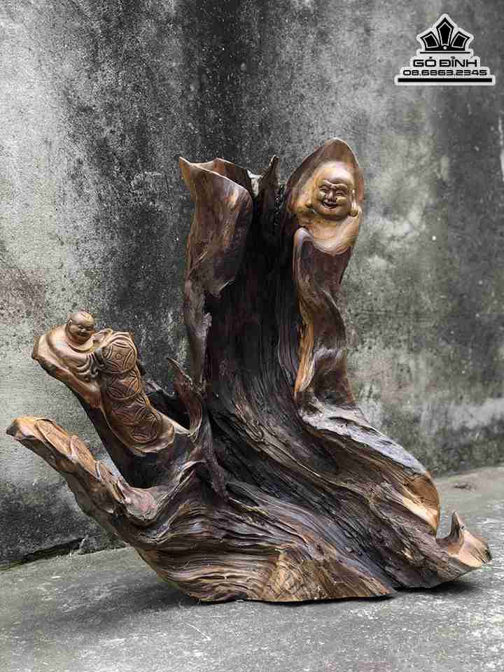 Tượng Phật Di Lặc Gỗ Lũa Bách Xanh Cao 60 Rộng 60 Dày 22 (cm)