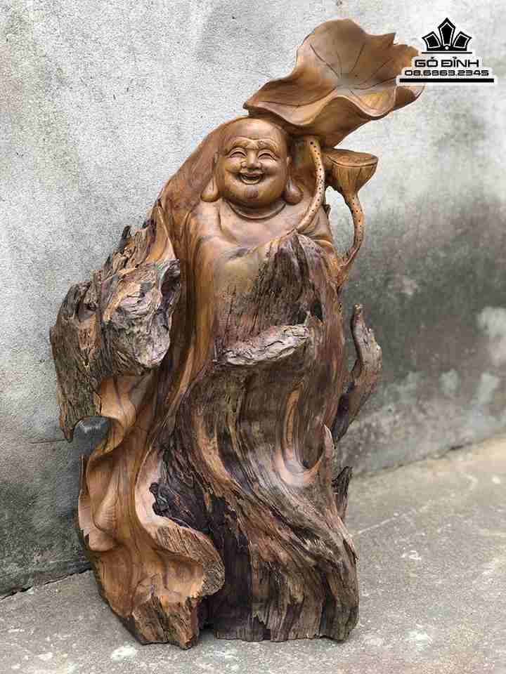 Tượng Phật Di Lặc Gỗ Lũa Bách Xanh Cao 66 Rộng 33 Dày 22 (cm)