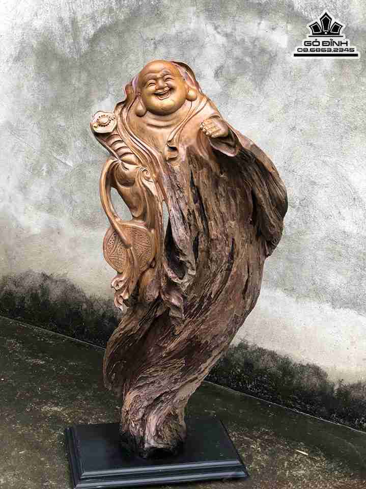Tượng Phật Di Lặc Gỗ Lũa Bách Xanh Cao 99 Ngang 46 Sâu 18 (cm)