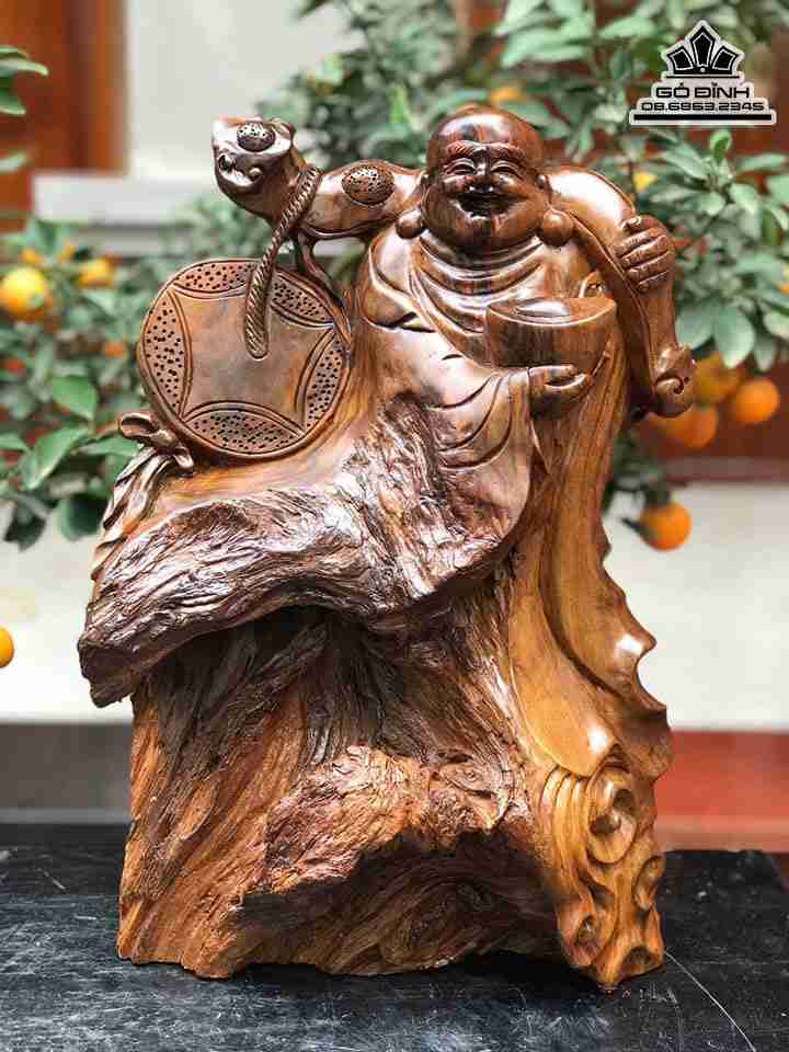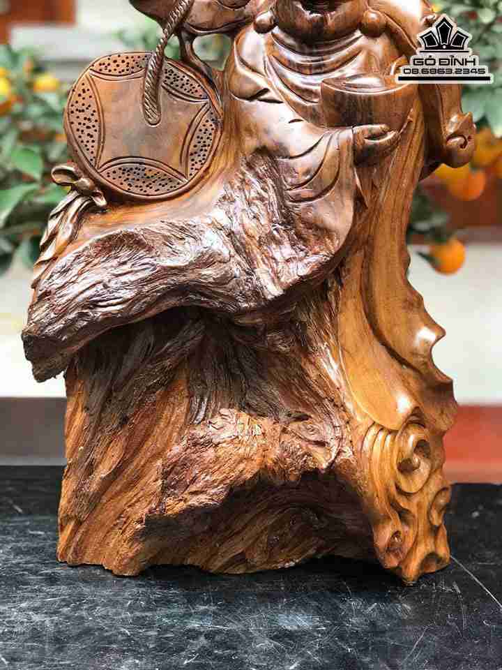 Tượng Phật Di Lặc Gỗ Lũa Bách Xanh Cao 42 Ngang 29 Sâu 12 (cm)