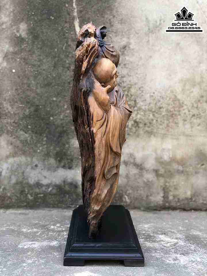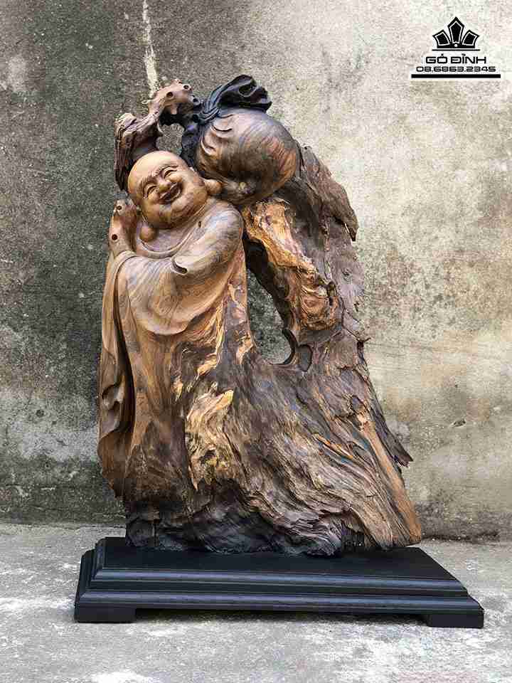 Di Lặc Gỗ Lũa Bách Xanh Cao 55 Ngang 33 Sâu 18 (cm)
