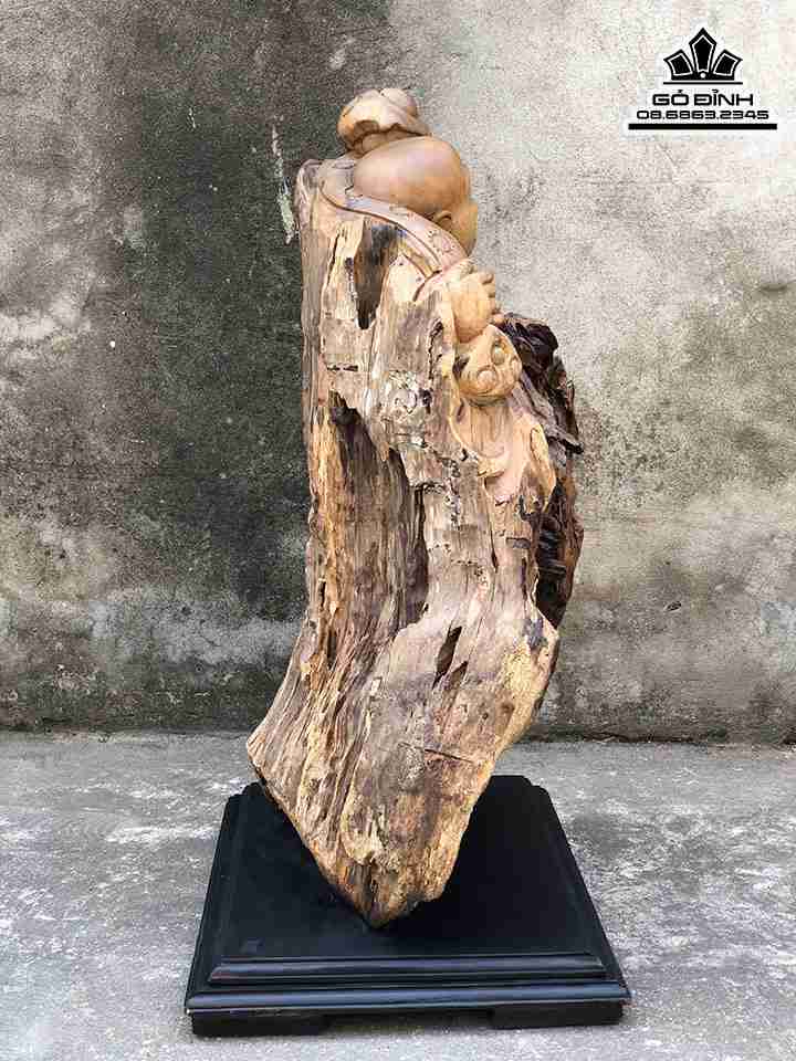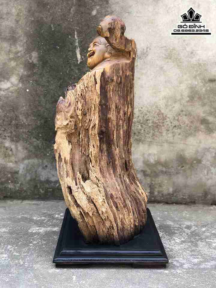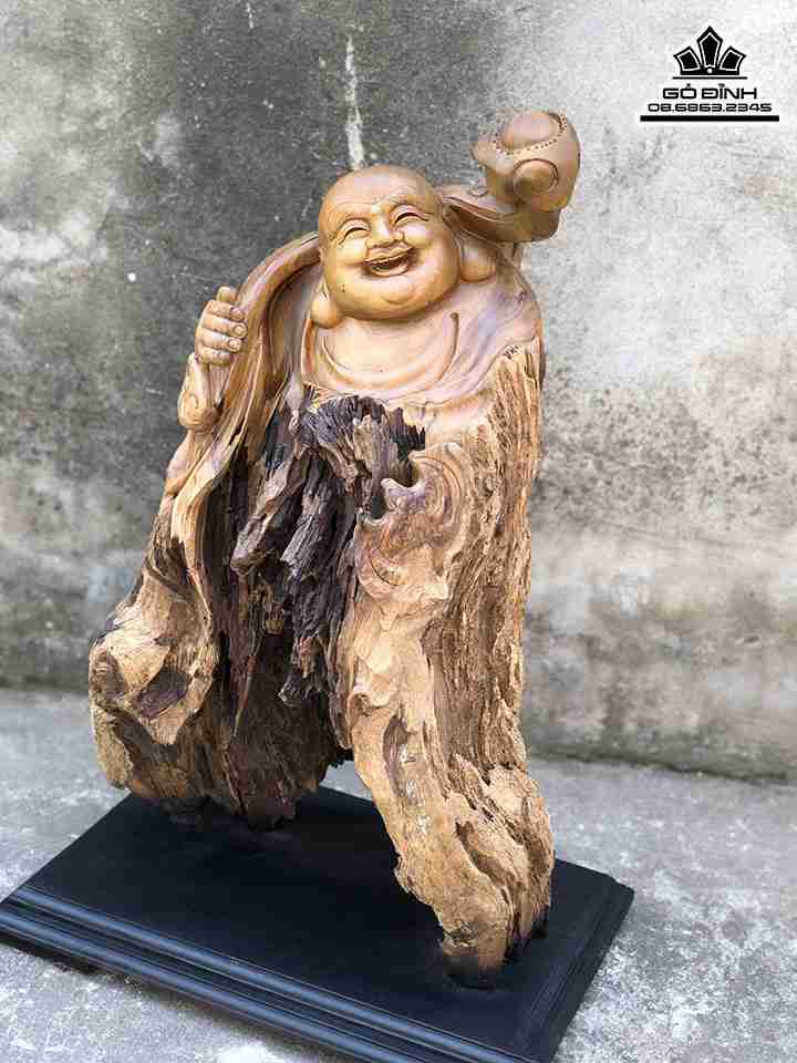 Tượng Phật Di Lặc Gỗ Lũa Bách Xanh Cao 69 Ngang 42 Sâu 29 (cm)