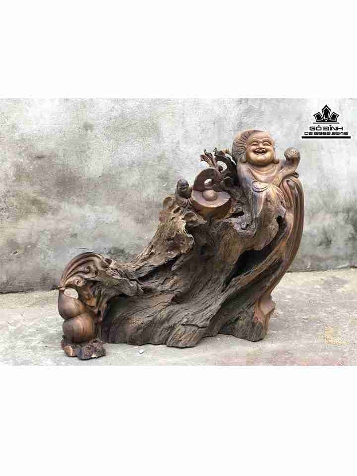 Tượng Phật Di Lặc Gỗ Lũa Bách Xanh Cao 71 Rộng 79 Dày 26 (cm)