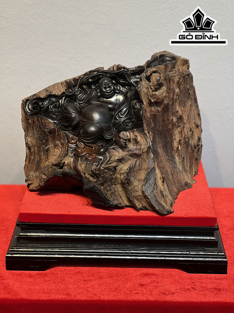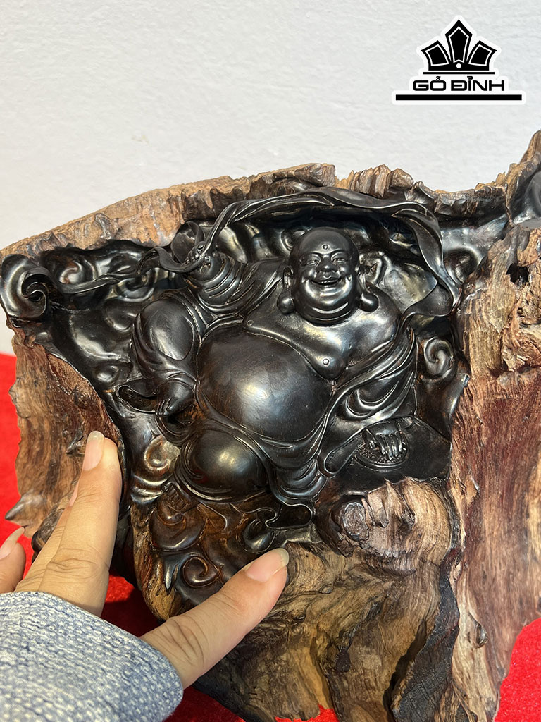 Tượng Phật Di Lặc Gỗ Mít Cao 20 Ngang 30 Sâu 20 (cm)