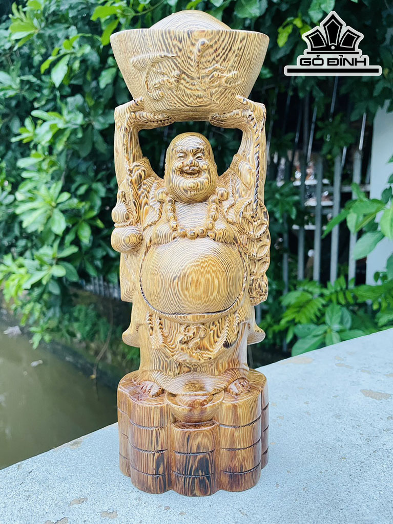 Tượng Phật Di Lặc Gỗ Mun Đuôi Công Cao 30 Ngang 11 Sâu 8 (cm)