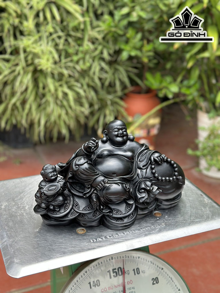 Tượng Phật Di Lặc Gỗ Mun Sừng Cao 18 Ngang 34 Sâu 15 (cm)