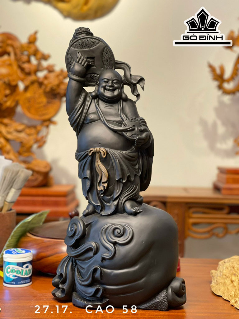 Tượng Phật Di Lặc Gỗ Mun Sừng Cao 58 Ngang 27 Sâu 17 (cm)