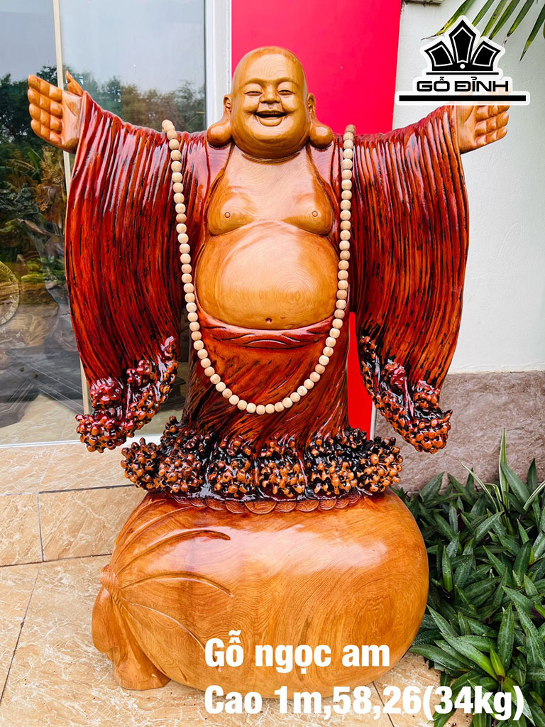 Tượng Phật Di Lặc Gỗ Ngọc Am Cao 100 Ngang 58 Sâu 26 (cm)