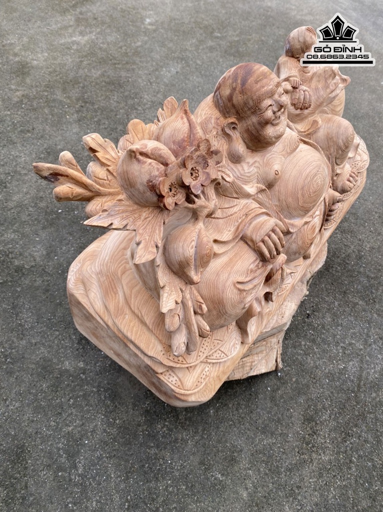 Tượng Phật Di Lặc Gỗ Ngọc Am Cao 26 Ngang 52 Sâu 21 (cm)