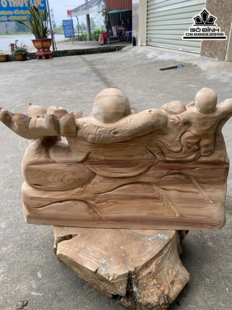 Tượng Phật Di Lặc Gỗ Ngọc Am Cao 34 Ngang 52 Sâu 16 (cm)