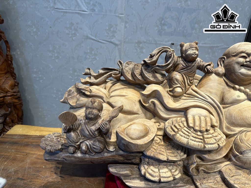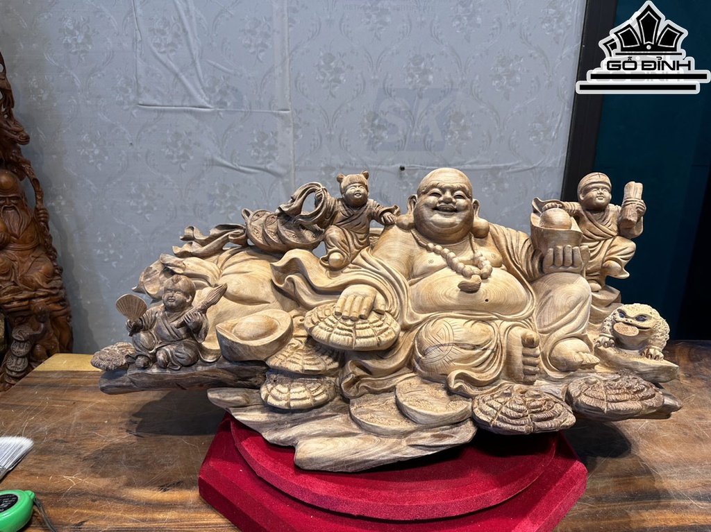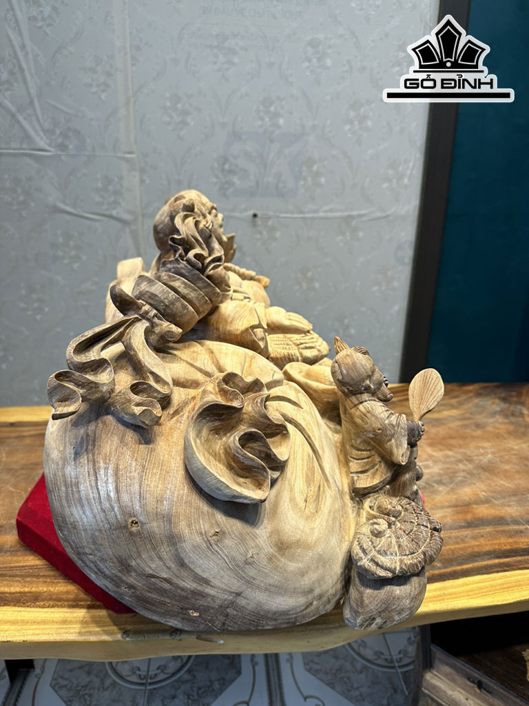 Tượng Phật Di Lặc Gỗ Ngọc Am Cao 35 Ngang 85 Sâu 40 (cm)
