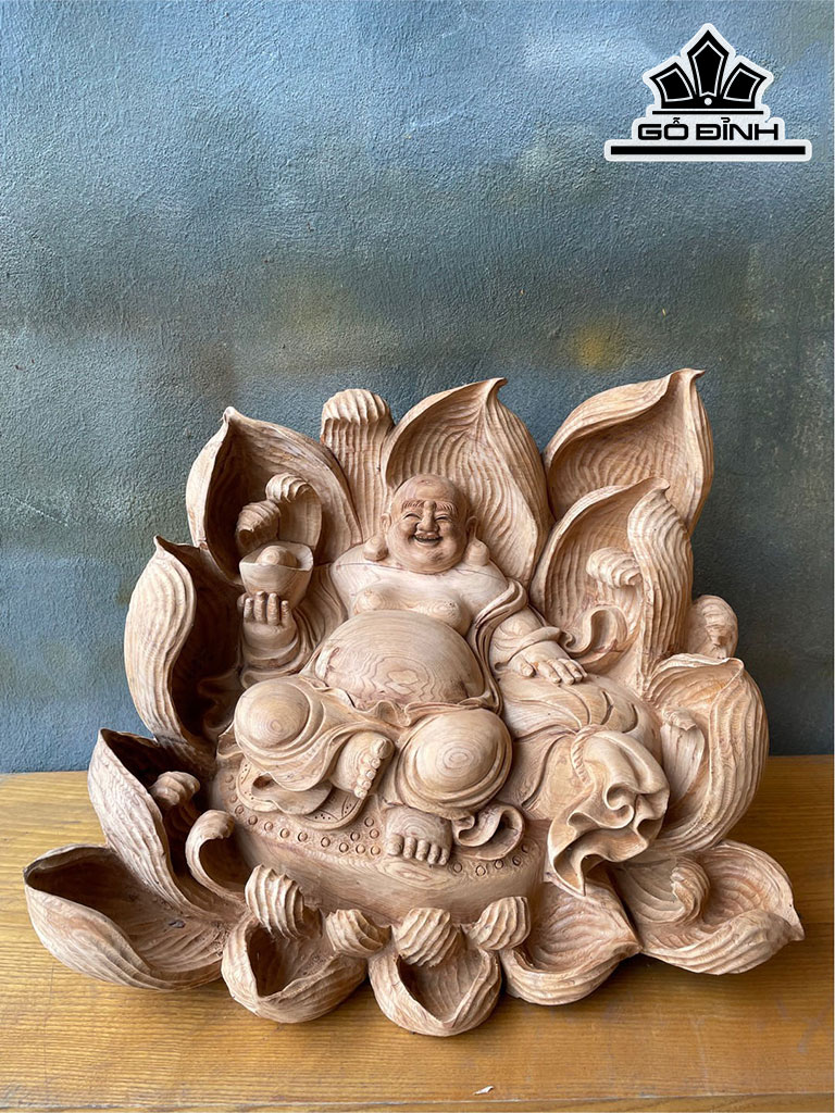 Tượng Phật Di Lặc Gỗ Ngọc Am Cao 36 Ngang 46 Sâu 35 (cm)