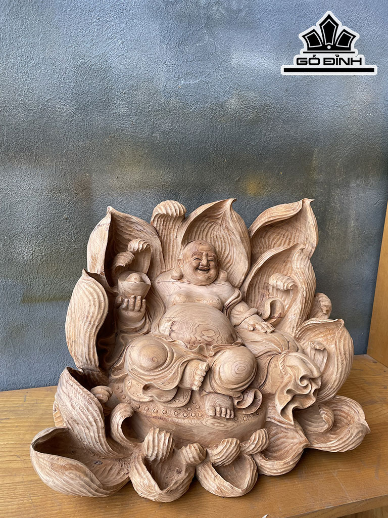 Tượng Phật Di Lặc Gỗ Ngọc Am Cao 36 Ngang 46 Sâu 35 (cm)