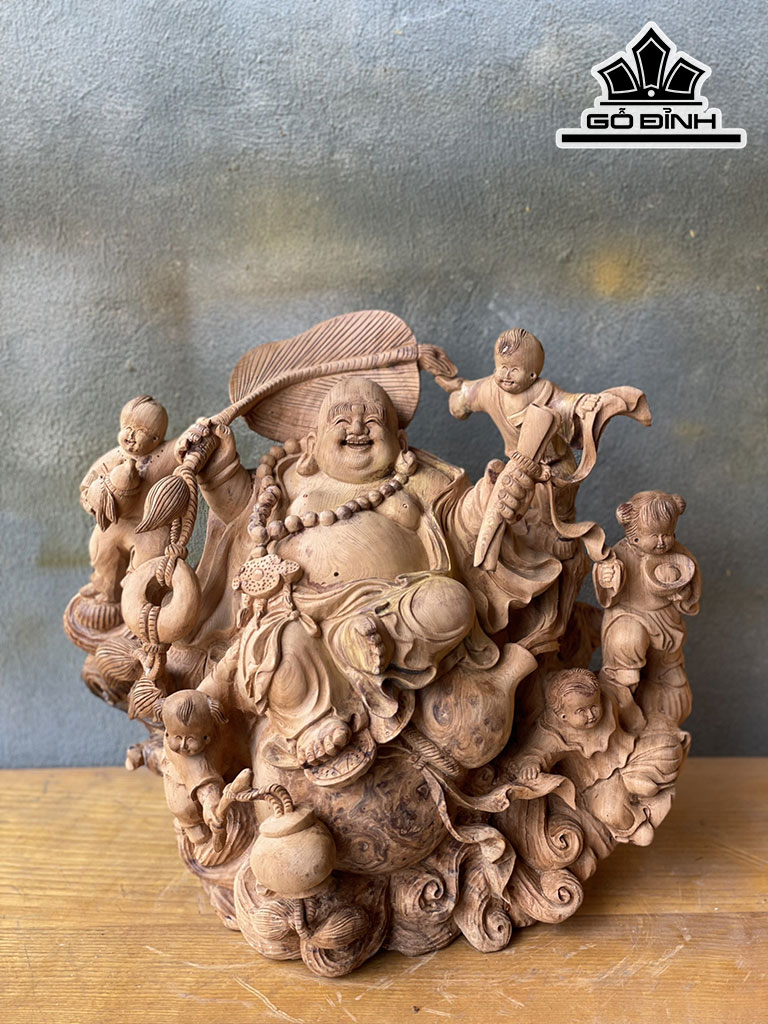 Tượng Phật Di Lặc Gỗ Ngọc Am Cao 37 Ngang 42 Sâu 27 (cm)