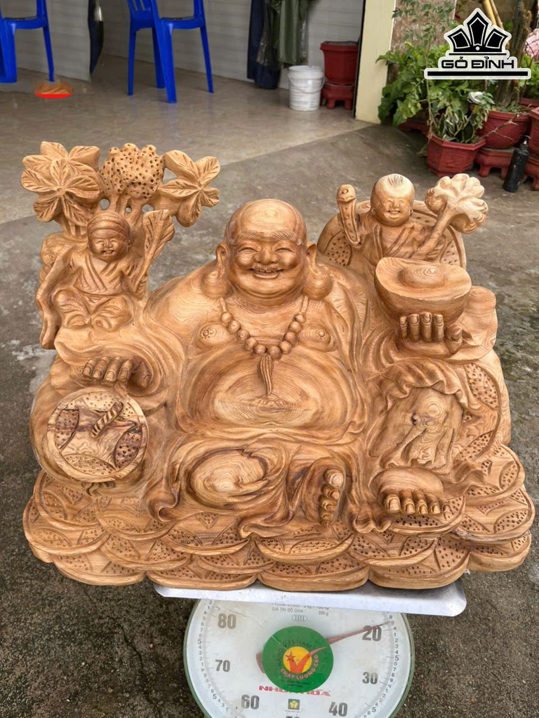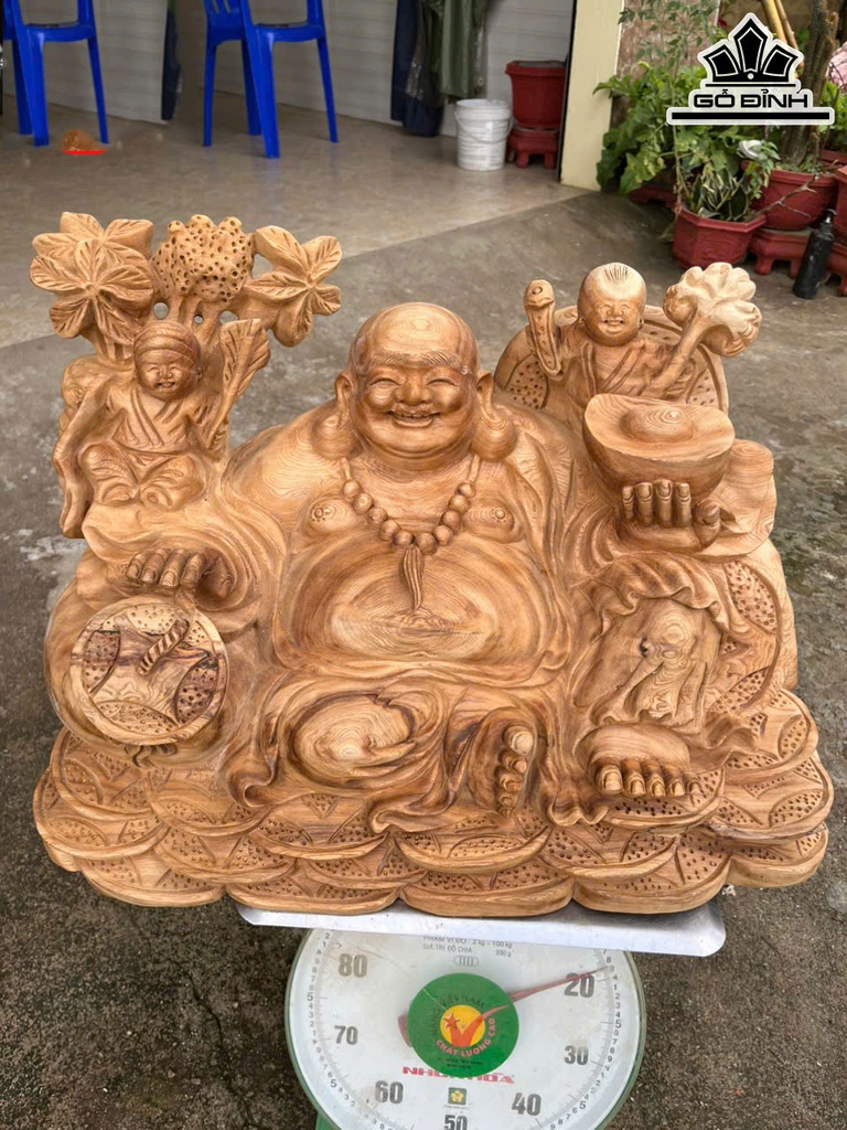 Tượng Phật Di Lặc Gỗ Ngọc Am Cao 37 Ngang 56 Sâu 30 (cm)