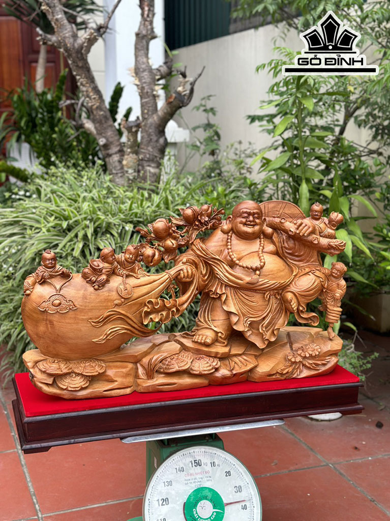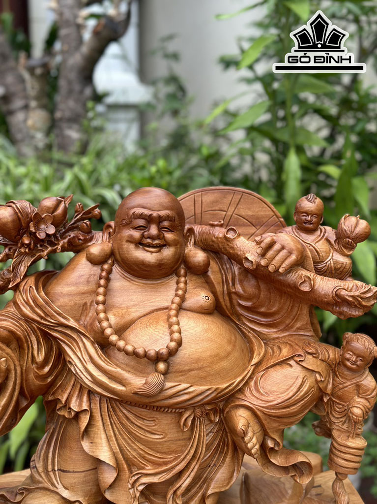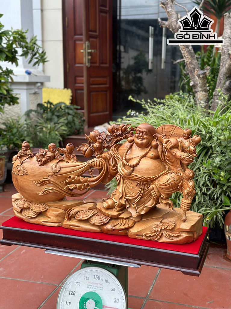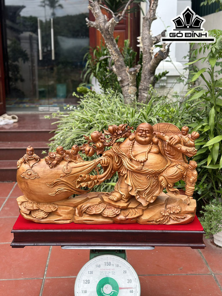 Tượng Phật Di Lặc Gỗ Ngọc Am Cao 48 Ngang 90 Sâu 28 (cm)