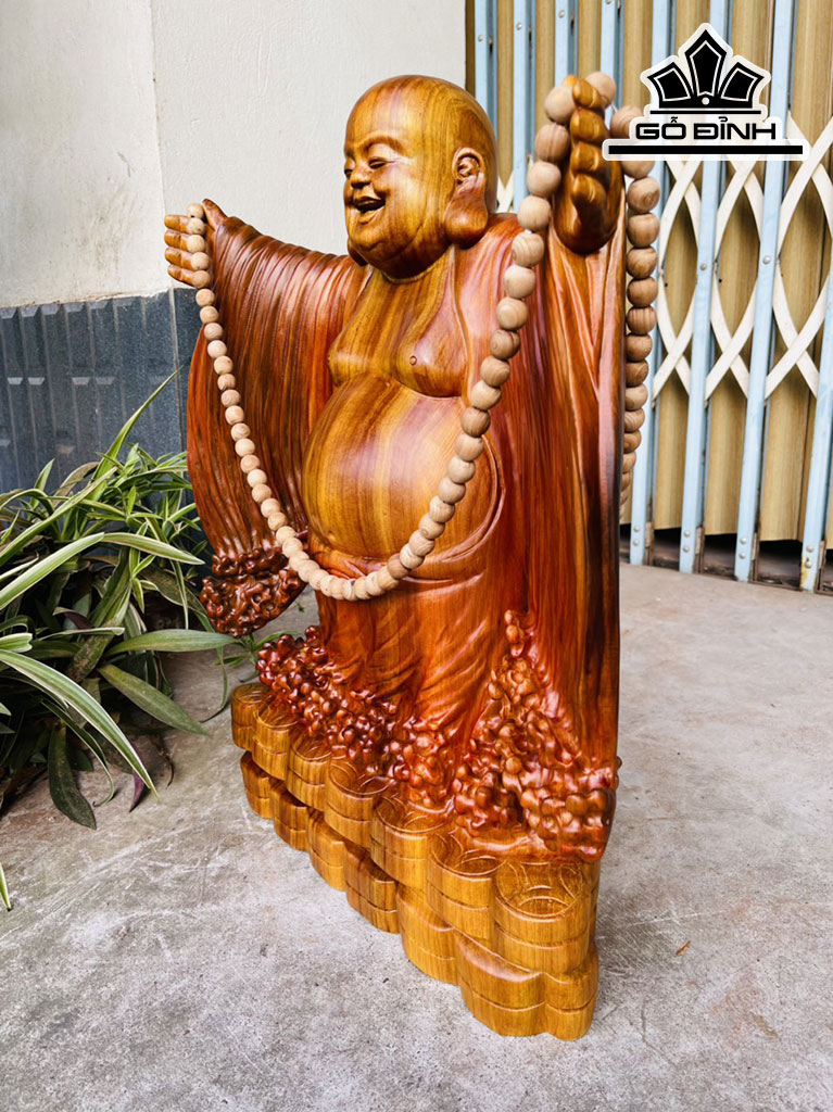 Tượng Phật Di Lặc Gỗ Ngọc Am Cao 55 Ngang 46 Sâu 16 (cm)