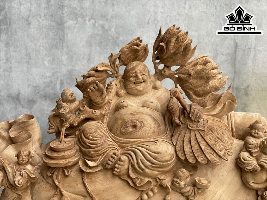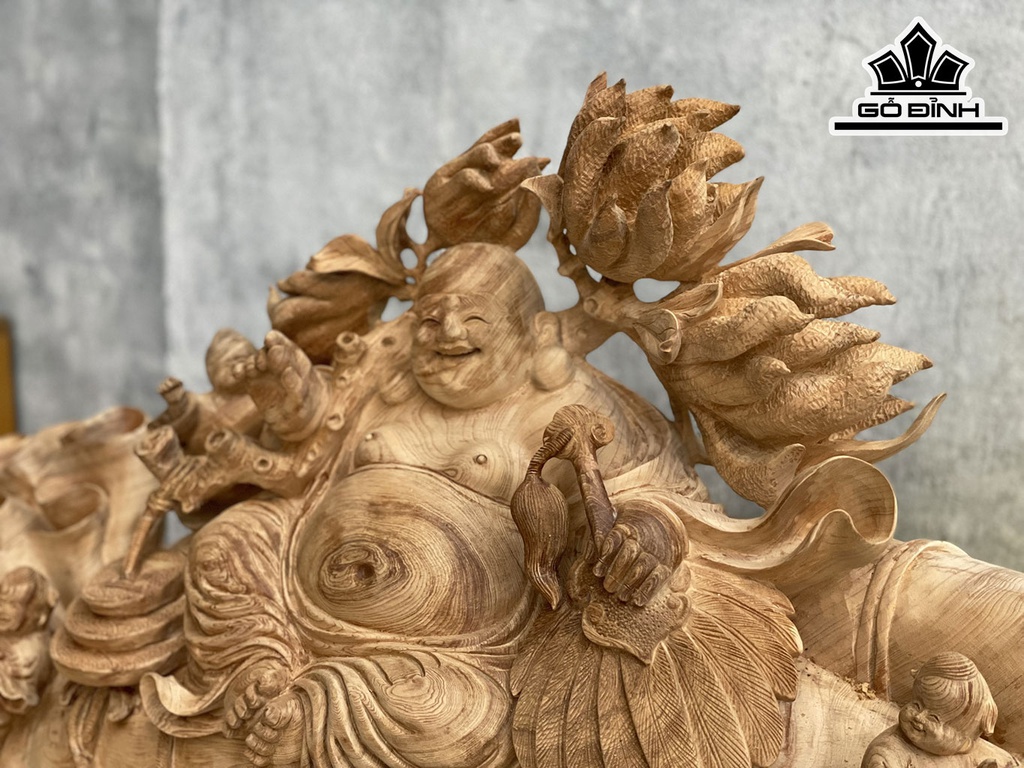 Tượng Phật Di Lặc Gỗ Ngọc Am Cao 58 Ngang 93 Sâu 28 (cm)