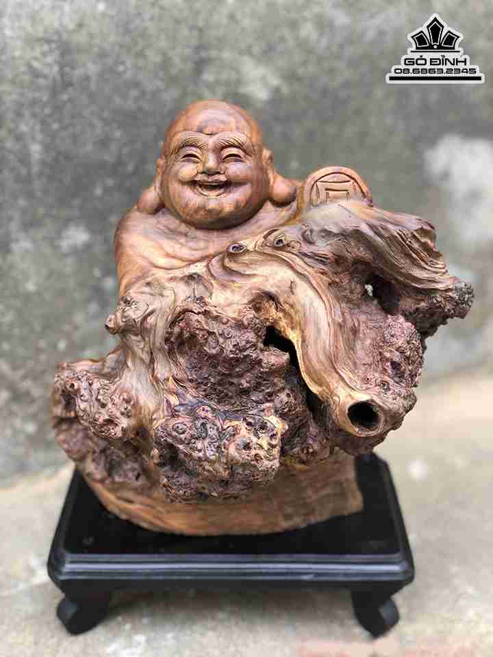 Tượng Phật Di Lặc Gỗ Nu Bách Xanh Cao 25 Rộng 22 Dày 15 (cm)