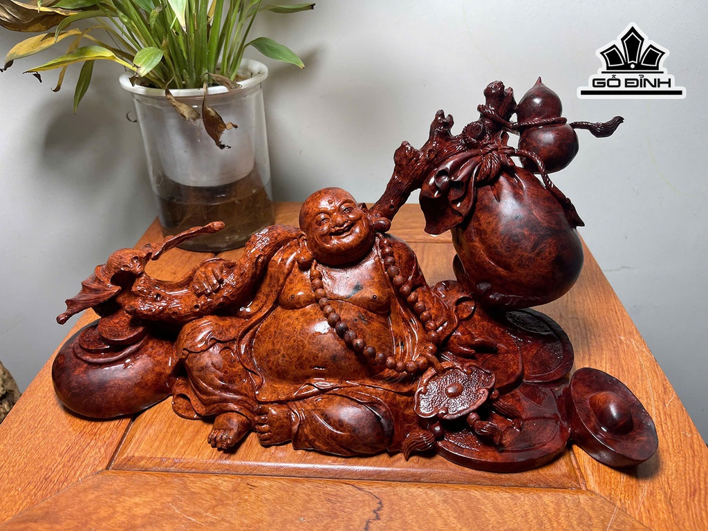 Tượng Phật Di Lặc Gỗ Nu Cẩm Cao 16 Ngang 45 Sâu 16 (cm)