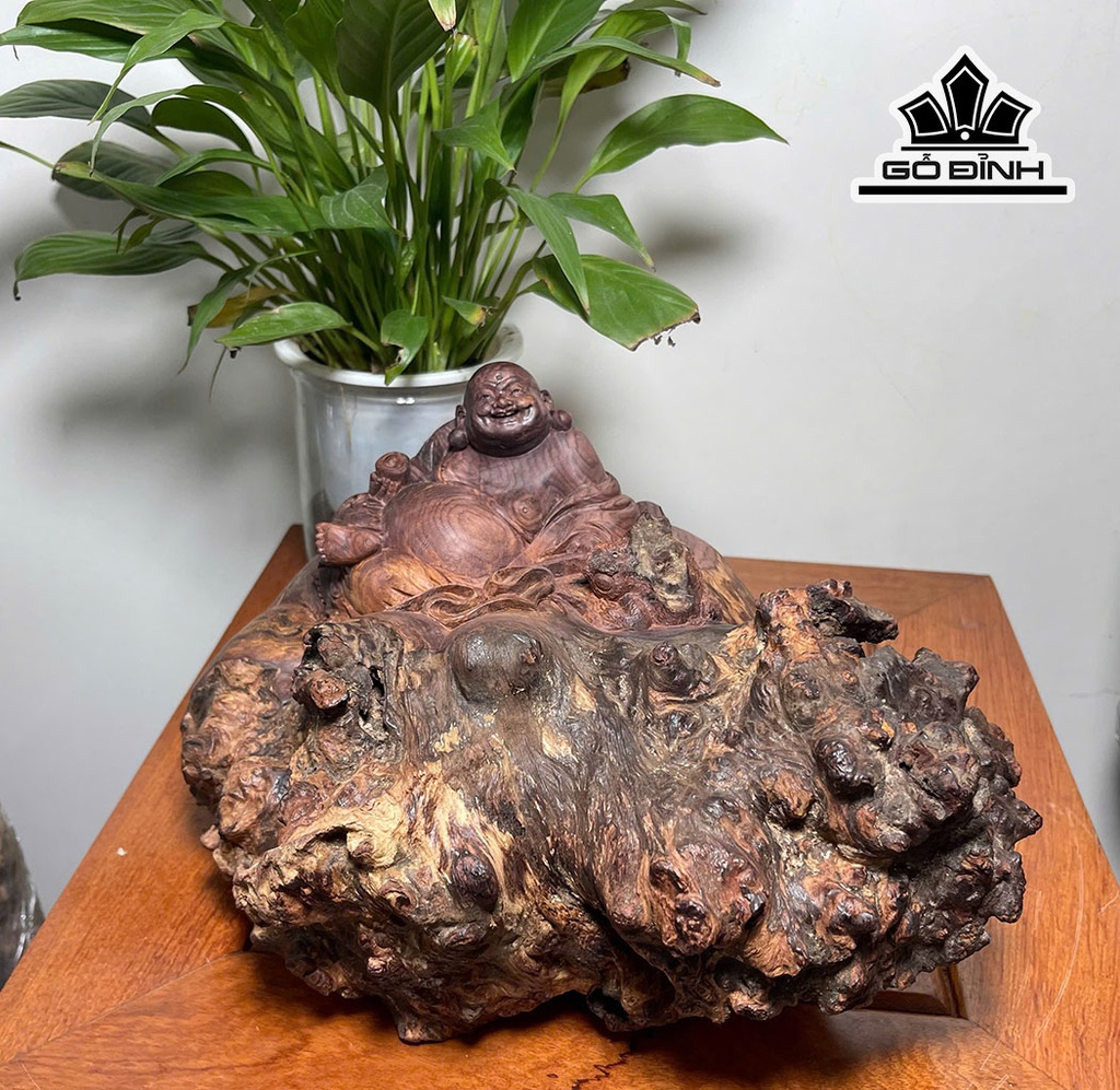 Tượng Phật Di Lặc Gỗ Nu Cẩm Cao 18 Ngang 30 Sâu 25 (cm)