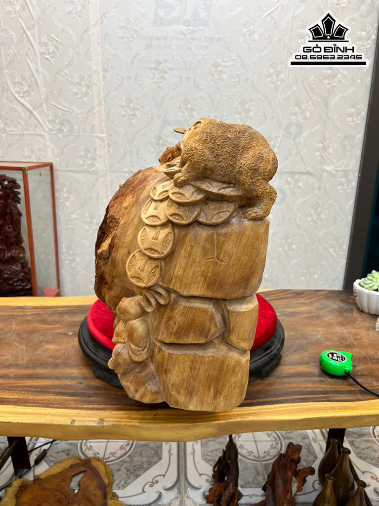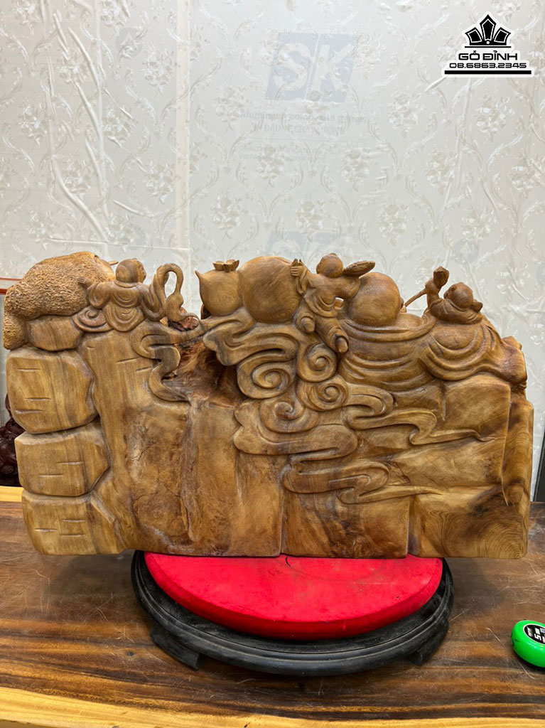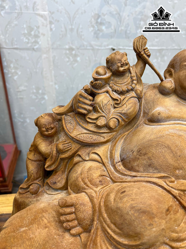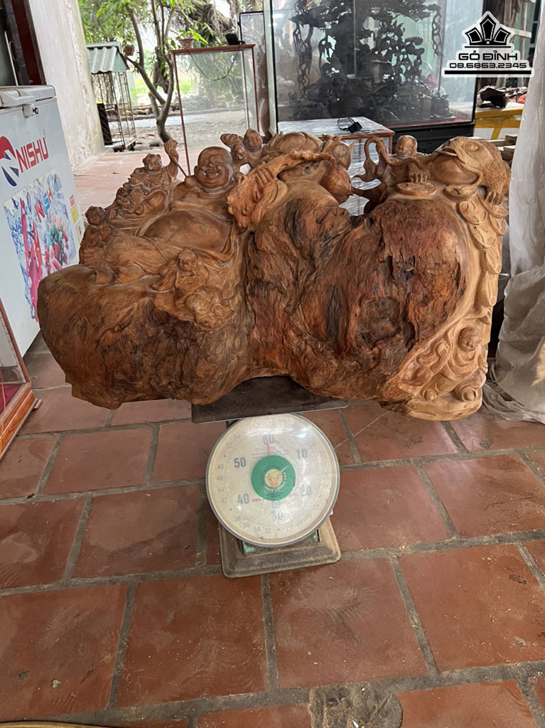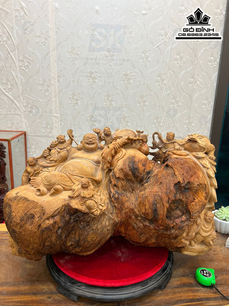 Tượng Phật Di Lặc Gỗ Nu Chun Sụn Ngọc Am Cao 46 Ngang 82 Sâu 35 (cm)