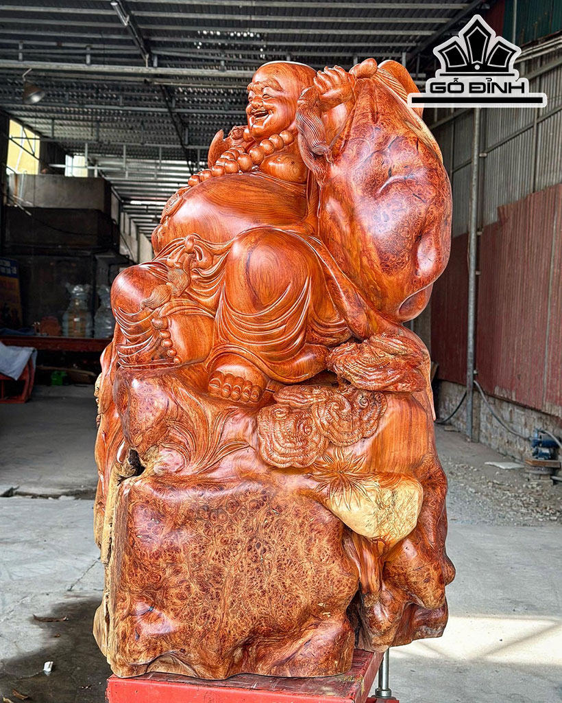 Tượng Phật Di Lặc Gỗ Nu Hương Cao 134 Ngang 97 Sâu 100 (cm)