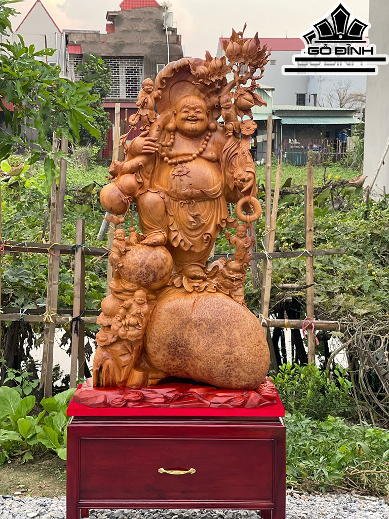 Tượng Phật Di Lặc Gỗ Nu Hương Cao 136 Ngang 70 Sâu 35 (cm)