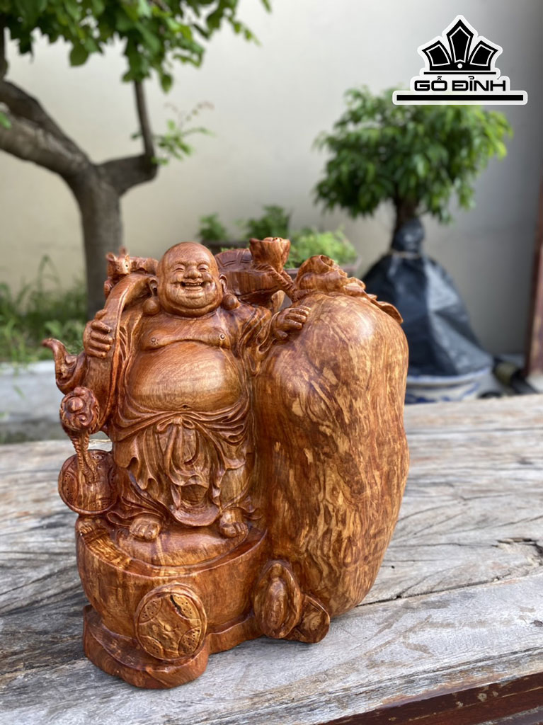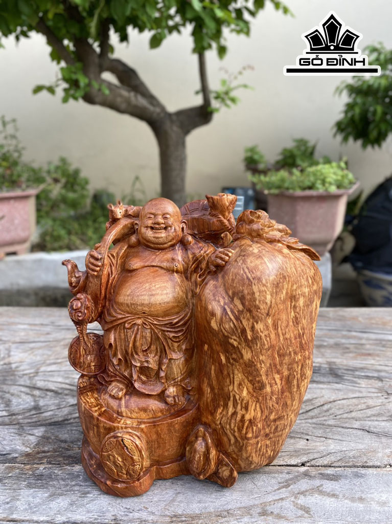 Tượng Phật Di Lặc Gỗ Nu Hương Cao 27 Ngang 27 Sâu 13 (cm)