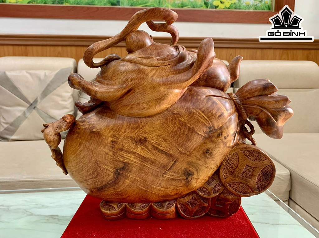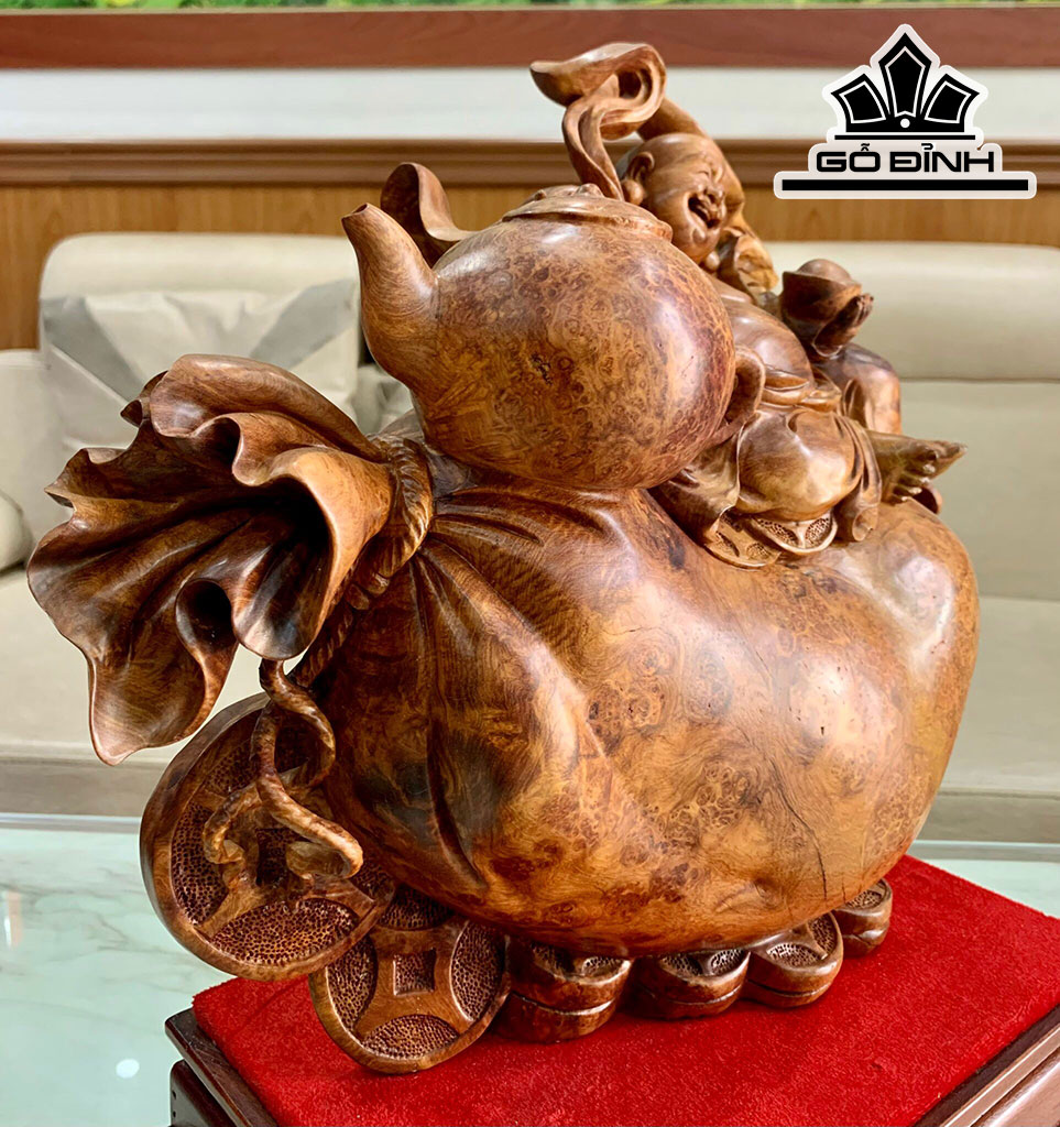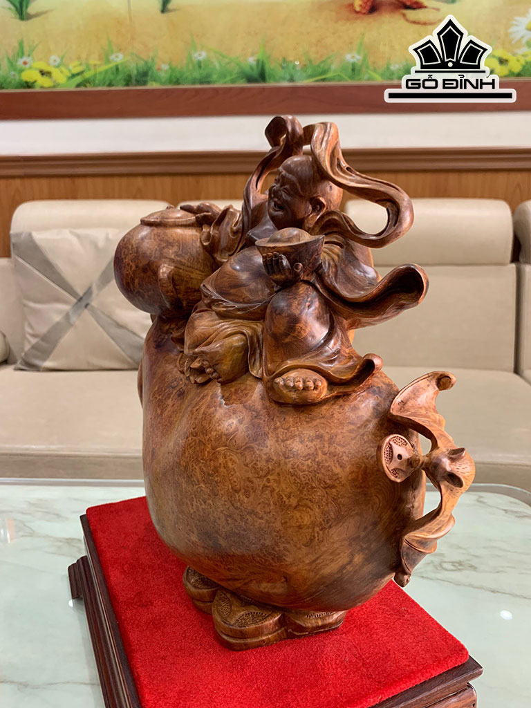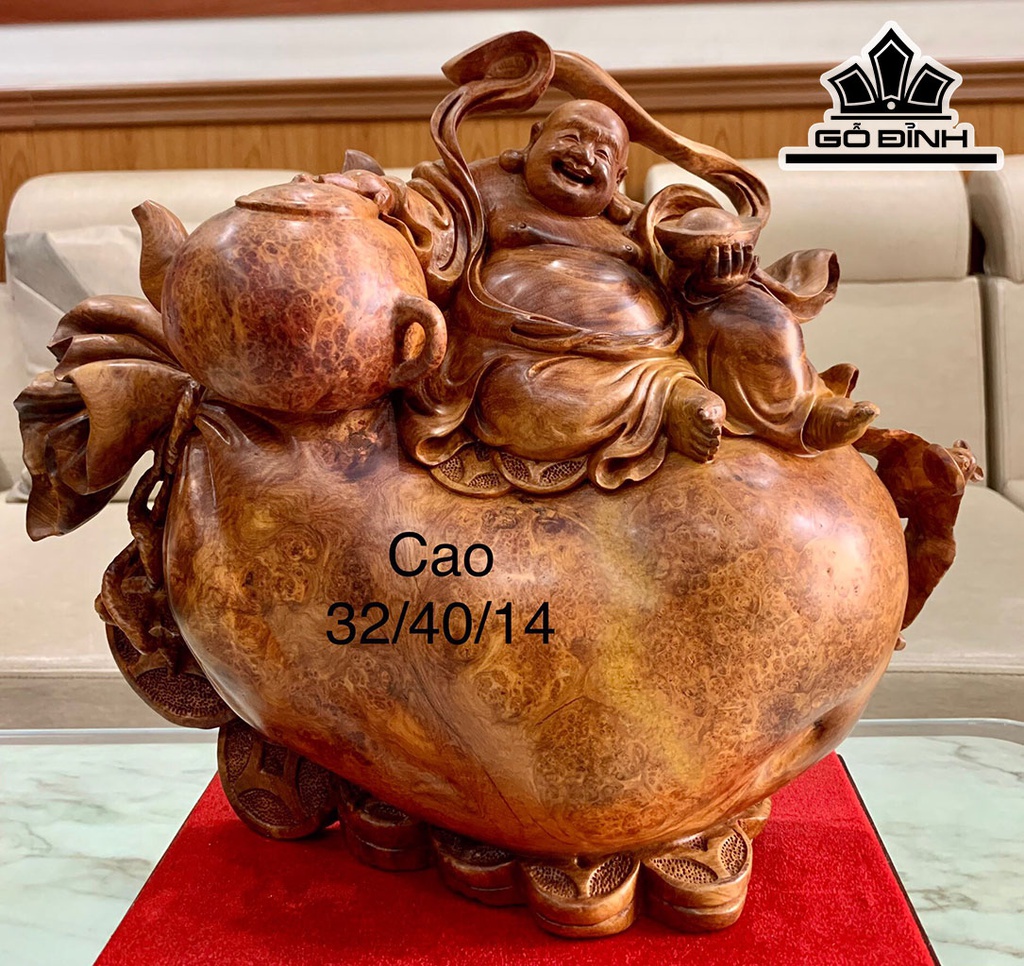 Tượng Phật Di Lặc Gỗ Nu Hương Cao 32 Ngang 40 Sâu 14 (cm)