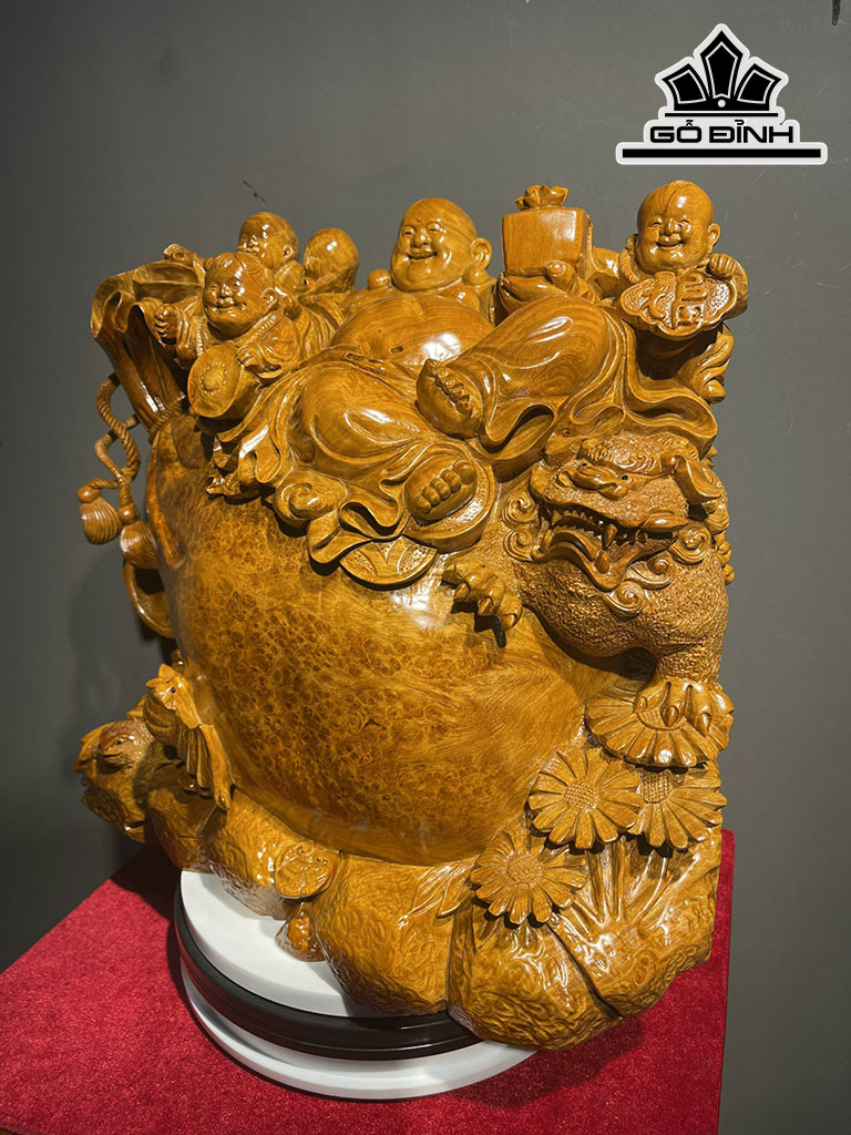 Tượng Phật Di Lặc Gỗ Nu Hương Cao 36 Ngang 40 Sâu 22 (cm)