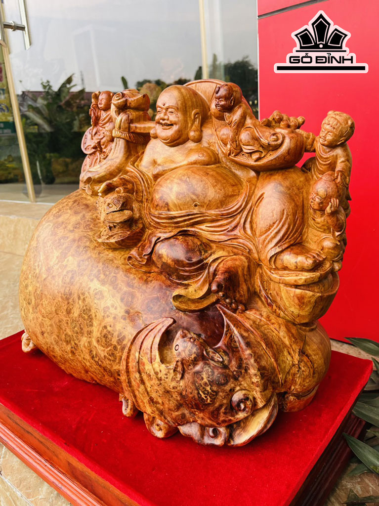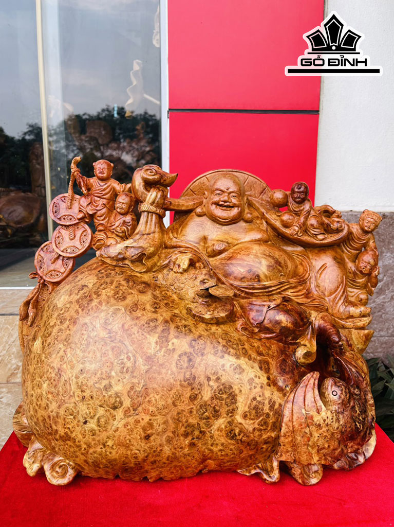 Tượng Phật Di Lặc Gỗ Nu Hương Cao 36 Ngang 50 Sâu 20 (cm)