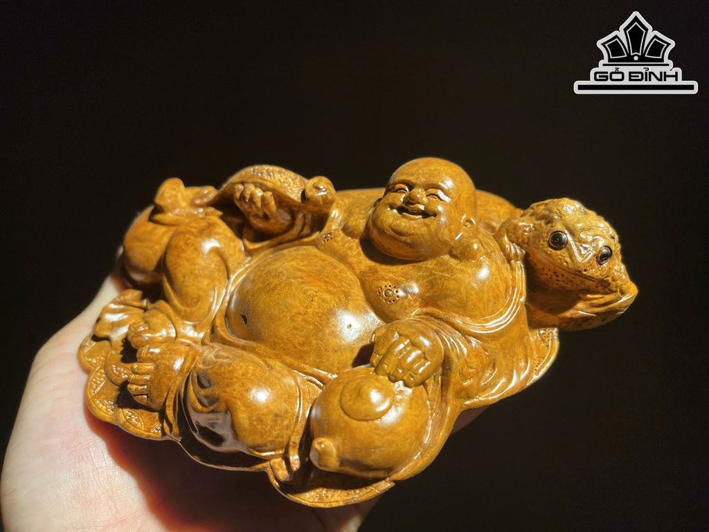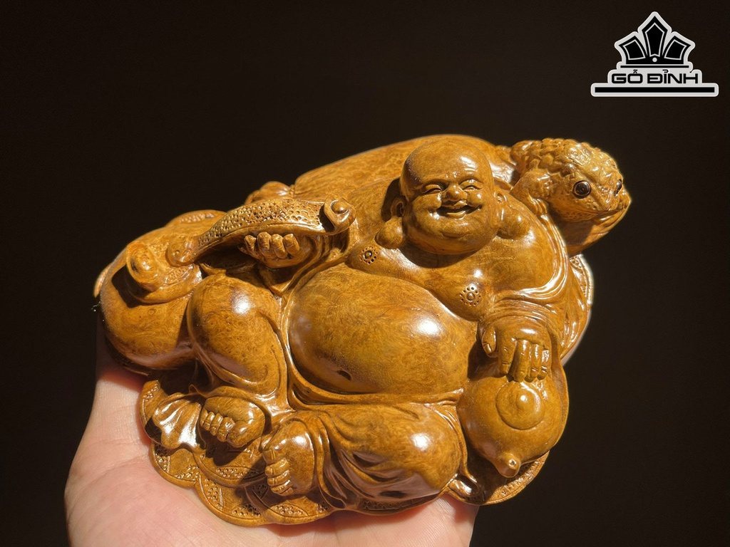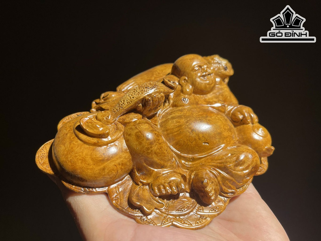 Tượng Phật Di Lặc Gỗ Nu Hương Cao 4,5 Ngang 16 Sâu 12 (cm)
