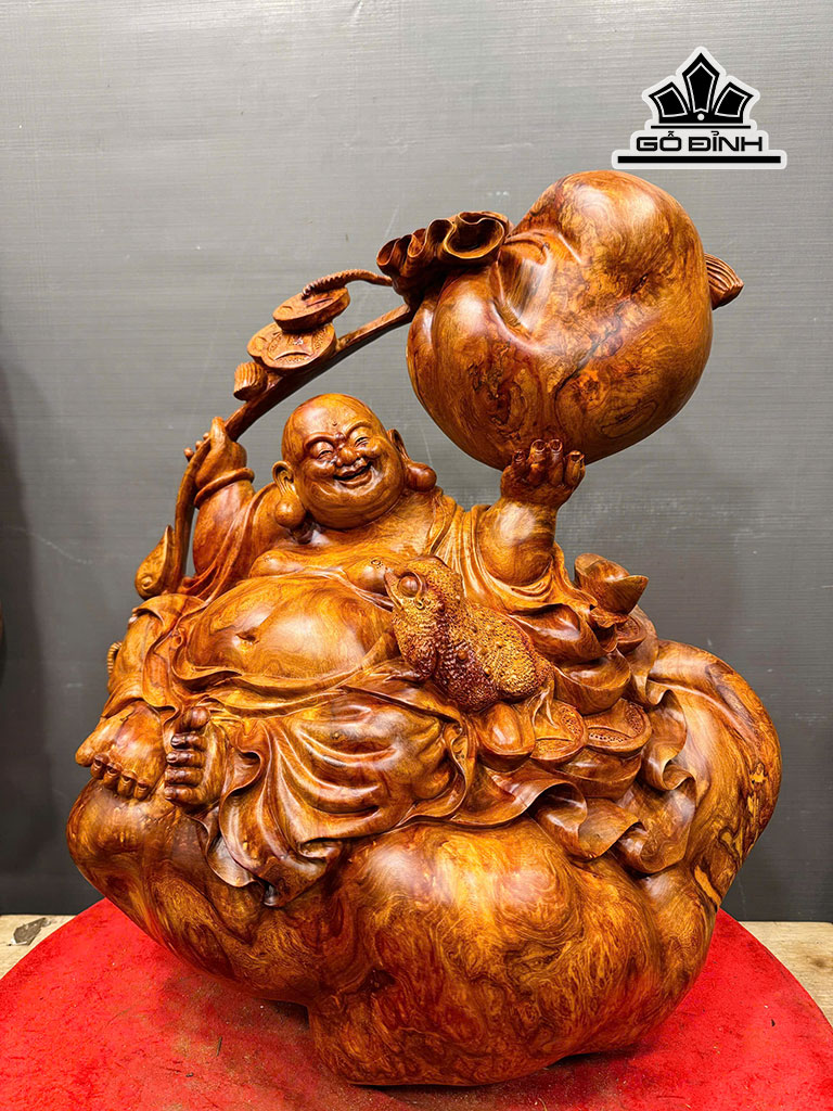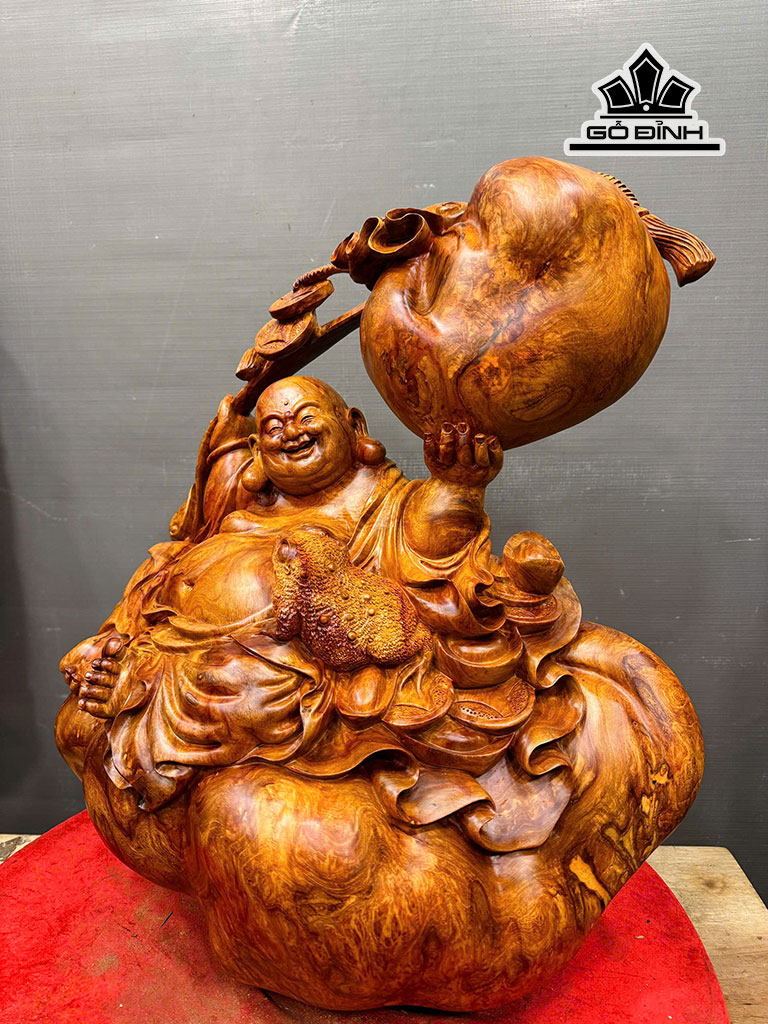 Tượng Phật Di Lặc Gỗ Nu Hương Cao 55 Ngang 51 Sâu 28 (cm) 23kg