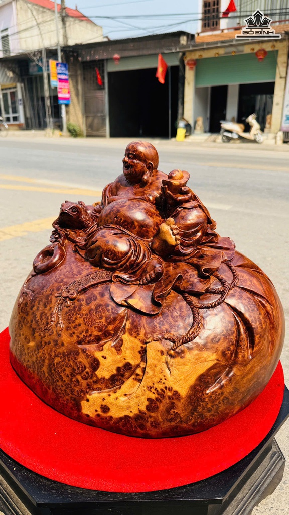 Tượng Phật Di Lặc Gỗ Nu Kháo Cao 35 Ngang 54 Sâu 31 (cm)